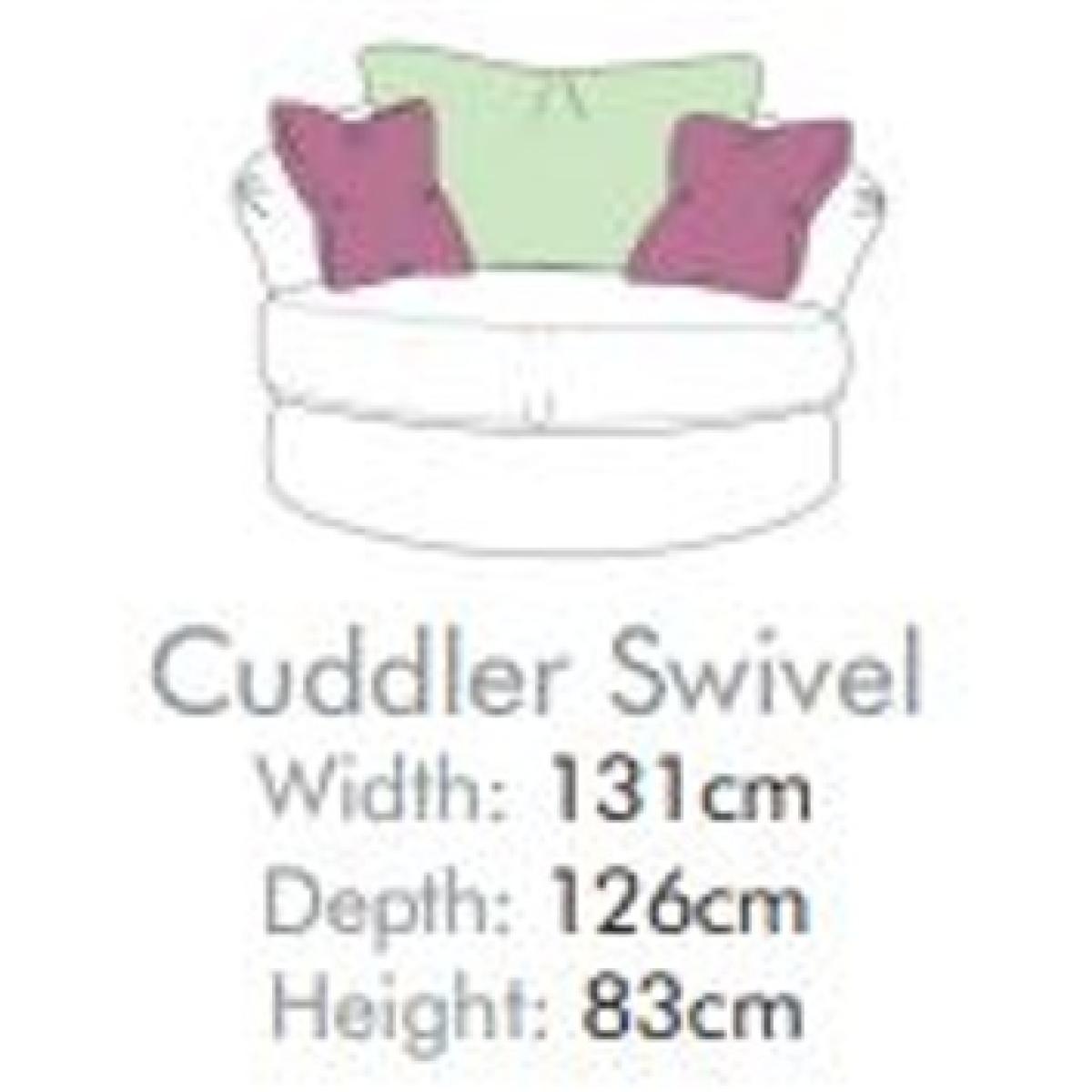 With a significant desire for large, low slung units inspired by European design and city living, the Freddie is a range of outstanding quality and available in a multitude of configurations and options. Frame - A traditional hardwood construction, pinned, screwed and glued. Arms/Back - The combi-unit backs are made up of Superloop springs, the sofas cuddler and chair have elastic webbing, covered with foam. Seat - The seats consist of traditional sinuous zig zag springs covered with layers of comfy foam. Seat Cushions are fibre filled. The Freddie Cuddler Swivel Chair is designed to pair perfectly with the Freddie Cuddler Swivel Footstool. Cuddler Swivel Chair Made in the UK Available in a choice of fabrics Dimensions - W: 131cm x D: 126cm x H: 83cm