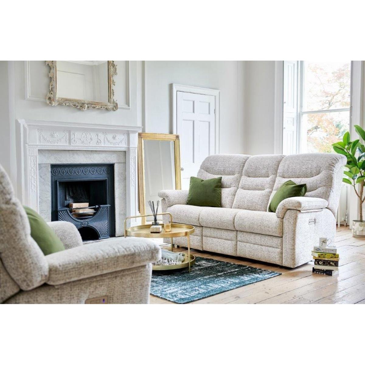 Ledbury offers classic G Plan comfort, combined with an elegant style. With soft curved arms and high-backed cushions, the Ledbury provides additional support and relaxation. Manual or Power recliner options available for effortless relaxation. Integrated USB charging points on power recliner models. Recliner sofas are supplied in sections for ease of delivery. Recliner furniture is supplied on fixed feet only. Elevate your comfort with Power Headrest & Lumbar options. Available in a range of fabrics and leathers. 3 Seater Dimensions Height: 111cm Width: 200cm Depth: 108cm Handcrafted in the UK with a 25 Year timber frame & frame construction guarantee.(Metal castors are available as a free option on static furniture only.) All screens vary in colour reproduction and whilst every effort has been made to display the colour as accurately as possible it is for guidance only.