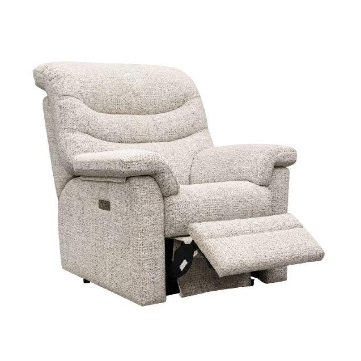 Ledbury offers classic G Plan comfort, combined with an elegant style. With soft curved arms and high-backed cushions, the Ledbury provides additional support and relaxation. Elevate your comfort with Power Headrest & Lumbar options. Manual or Power recliner options available for effortless relaxation. Integrated USB charging points on power recliner models. Also available as a dual elevate chair. Choose from a range of fabrics and leathers. Chair Dimensions Height: 111cm Width: 97cm Depth: 108cm   Handcrafted in the UK with a 25 Year timber frame & frame construction guarantee.(Metal castors are available as a free option on static furniture only.) All screens vary in colour reproduction and whilst every effort has been made to display the colour as accurately as possible it is for guidance only.