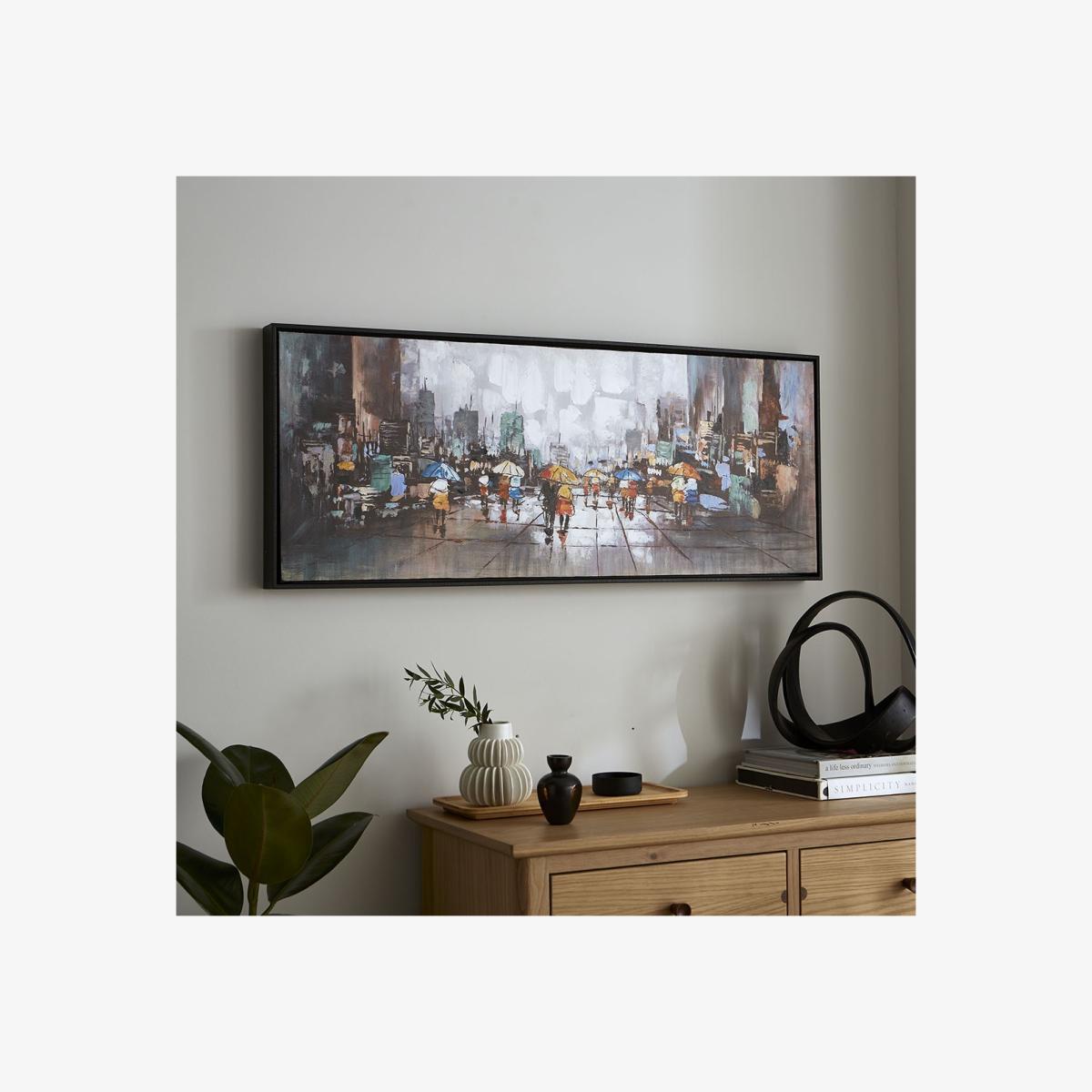 I love the fact that this Downtown canvas brings a contemporary, urban vibe to any space. Its large-scale design works particularly well in living rooms or open-plan areas where you want to create a focal point. Pair it with neutral walls and simple furniture to let the artwork stand out, or add other modern accents for a cohesive look. Practical styling tips include layering with smaller framed pieces or decorative objects on sideboards to avoid overcrowding, and ensuring it’s hung at eye level for maximum impact. Its abstract cityscape makes it quite versatile, easily fitting within both minimalist and more eclectic interiors.