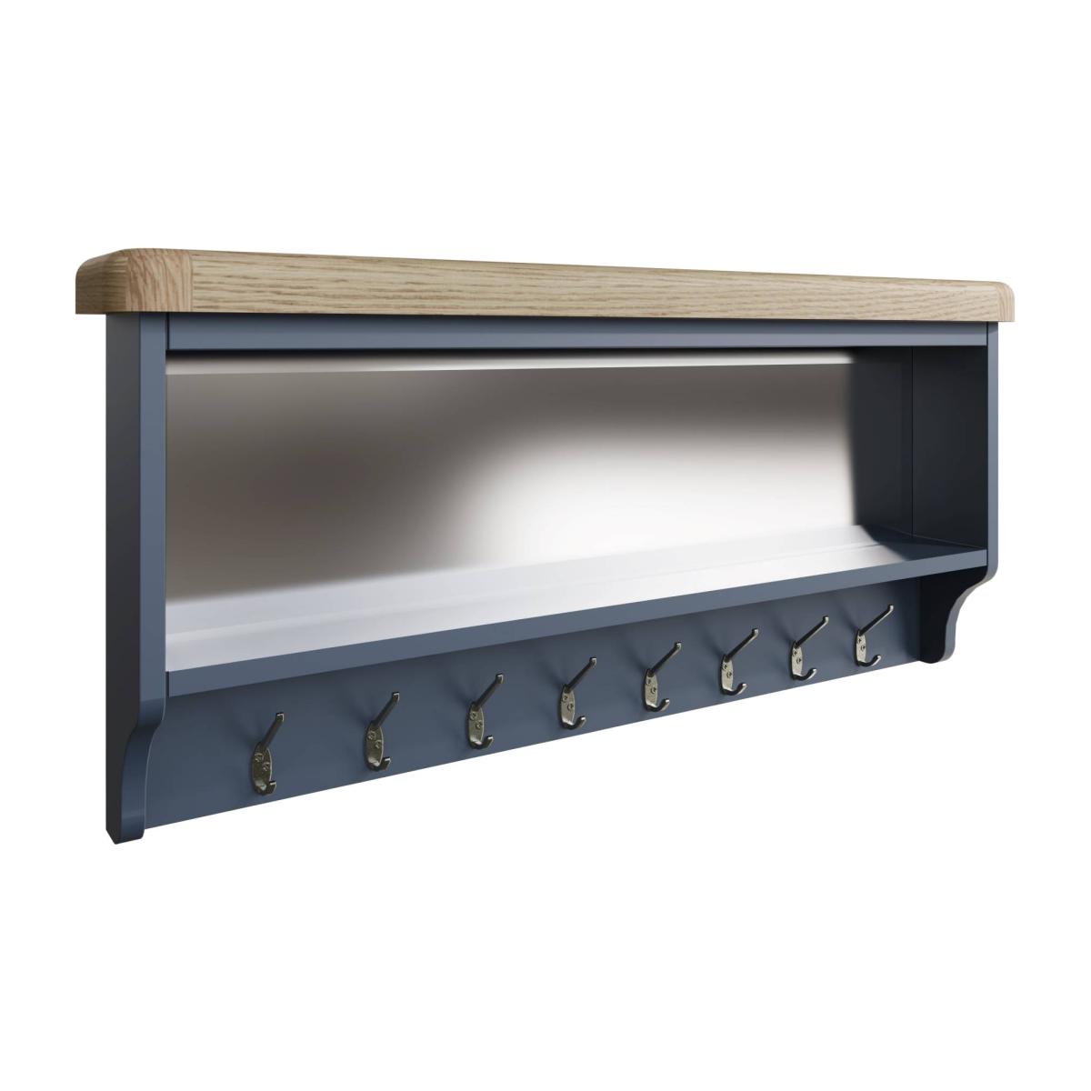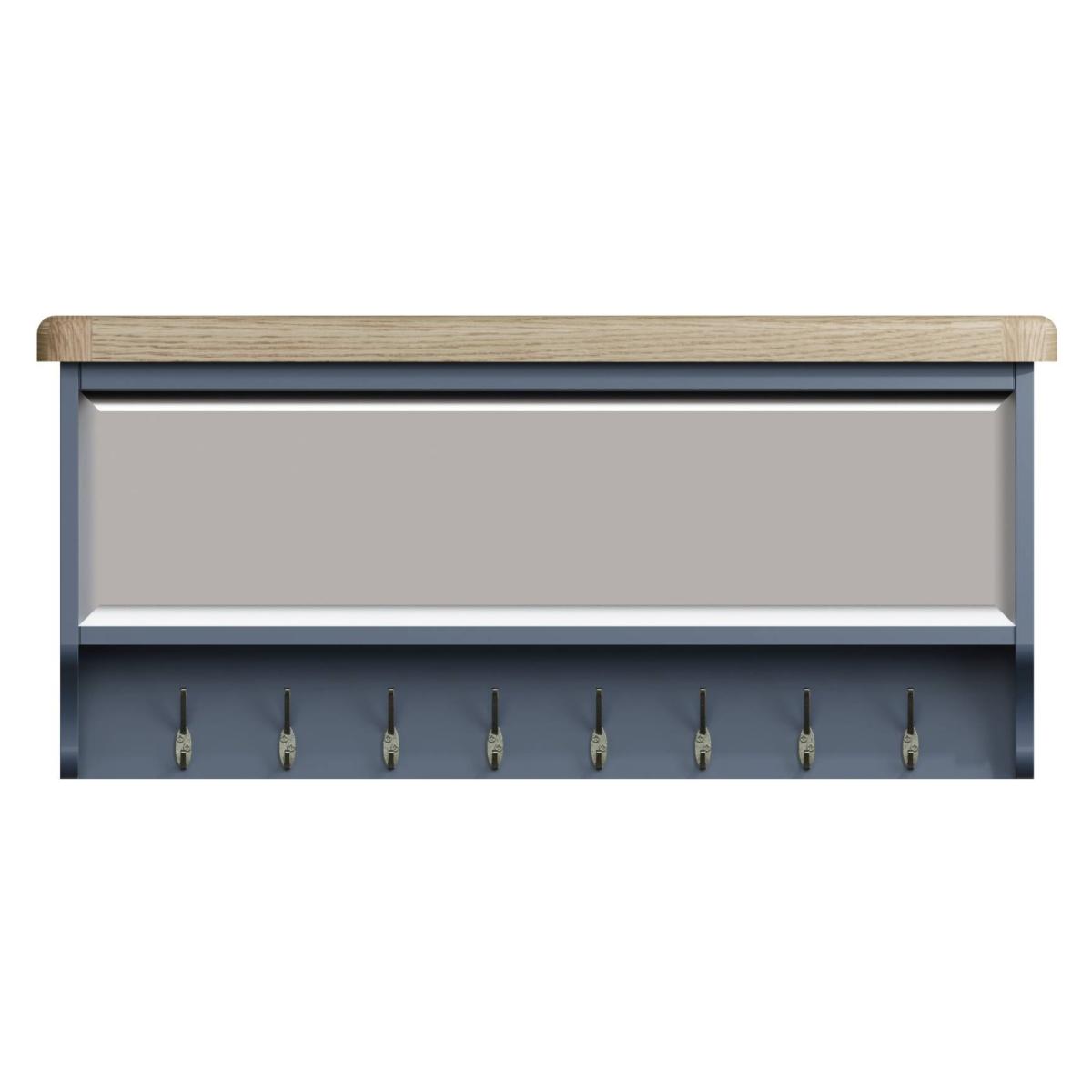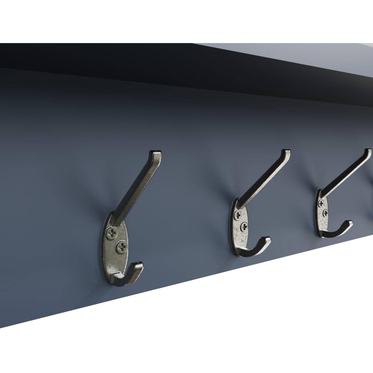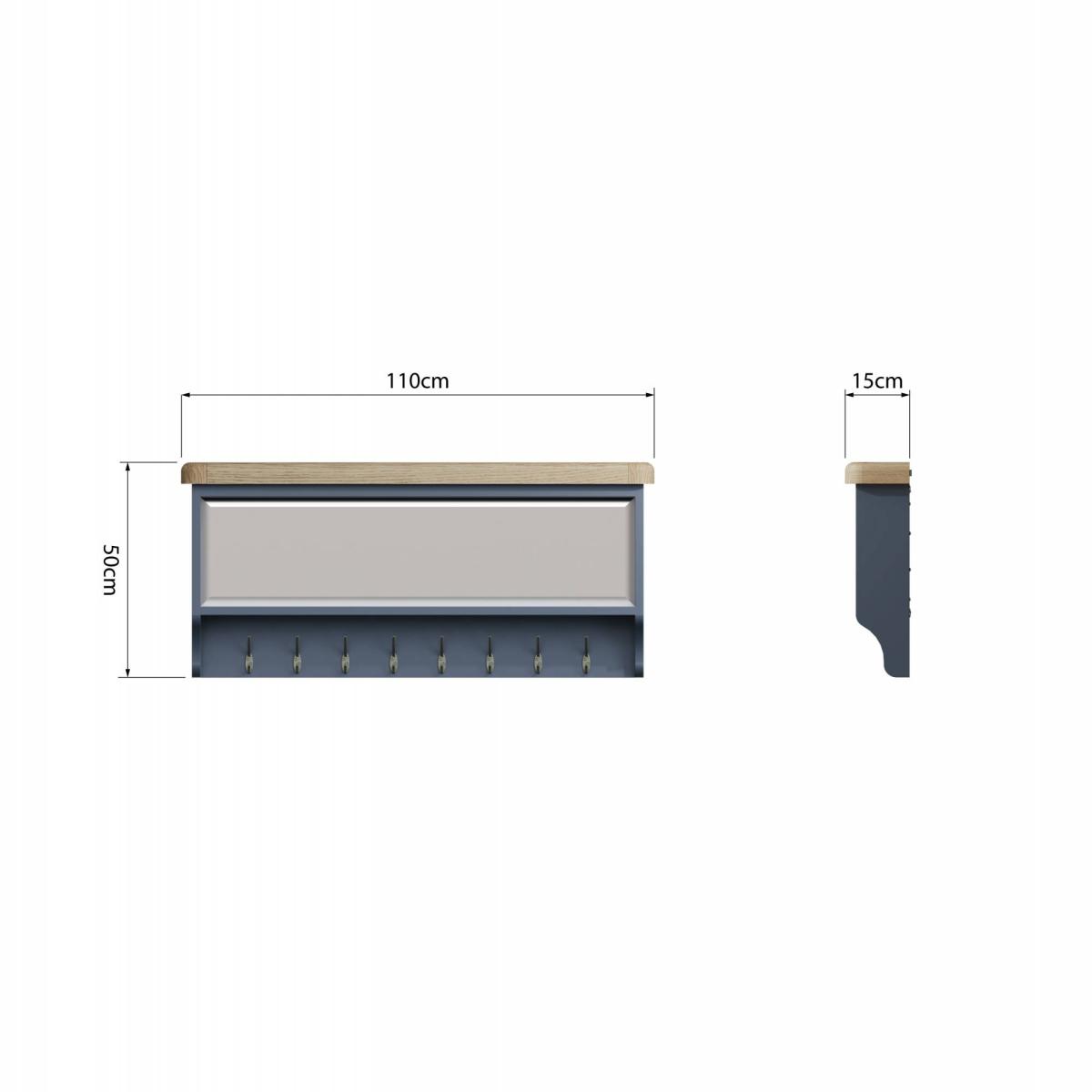 Create a stunning look in your home with the Hexham Furniture collection. With chunky oak tops and smooth rounded corners combined with the eye-catching painted blue smoked oak solid frames, this furniture collection exudes class and style and will be sure to make a statement in any home. Painted Blue and Smoked Oak Solid Wood Frame Fixing Pack and Brackets Included Mirrored Back 5 Coat Hooks Ready Assembled Dimensions - W: 110cm x D: 15cm x H: 50cm All screens vary in colour reproduction and whilst every effort has been made to display the colour as accurately as possible it is for guidance only.