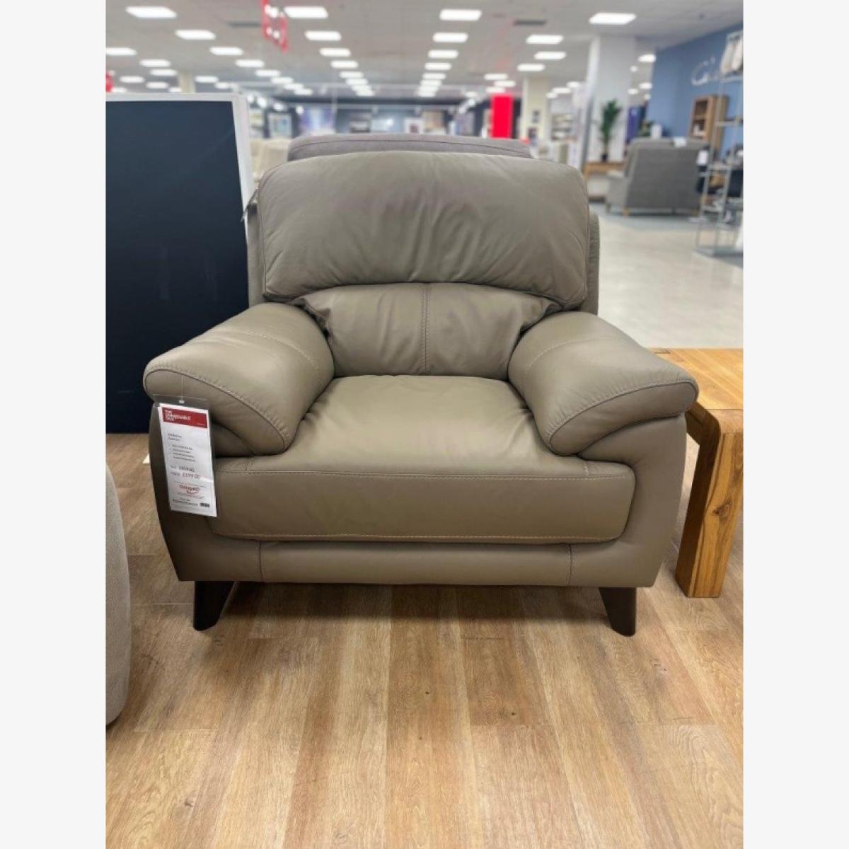 Kimberley Armchair In Pine Bark Leather, in-stock and ready to deliver to your home in as little as 5 working days. Kimberley is a compact collection of static sofas and a chair exclusively available in a new range of corrected grain leathers. Premium cow hides are conventionally dyed, re-tanned and finished using micro pigment with a protective coat to provide an even coloration with substantial wearability without compromising its natural characteristics and feel when upholstered. Split hides are used on the sides and backs of sofas. With Generous arm cushions that provide amble comfort and support at the end of a busy day. Sit back into the comfortable padded back cushions and feel enveloped. The deep seat cushions provide the final comfort factor Seats are supported with no sag springs whilst the back rest has rubber webbing. Minimal assembly is required. Armchair Dimensions. *Width: 107cm *Depth: 96cm *Seat Depth: 56cm *Back Height: 92cm *Seat Height: 44cm All screens vary in colour reproduction and whilst every effort has been made to display the colour as accurately as possible it is for guidance only.