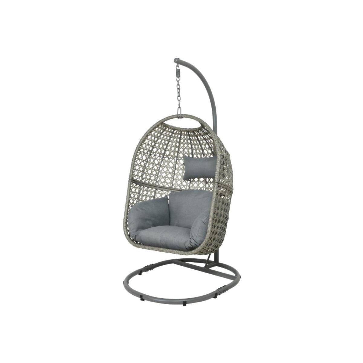 Sit back, relax and watch the world go by in the Knipton egg chair, this is a fabulous addition to any outdoor space and is suitable for indoor and outdoor use.  The rattan is delicately woven around a powder coated metal frame. Easy to move and extremely comfortable, the Knipton Egg Chair comes with a large cushion that comprises arms, seats and a headrest. Dimensions:Diameter 95cm x H 195cm Cushion colour: Grey Assembly Required. All screens vary in colour reproduction and whilst every effort has been made to display the colour as accurately as possible it is for guidance only