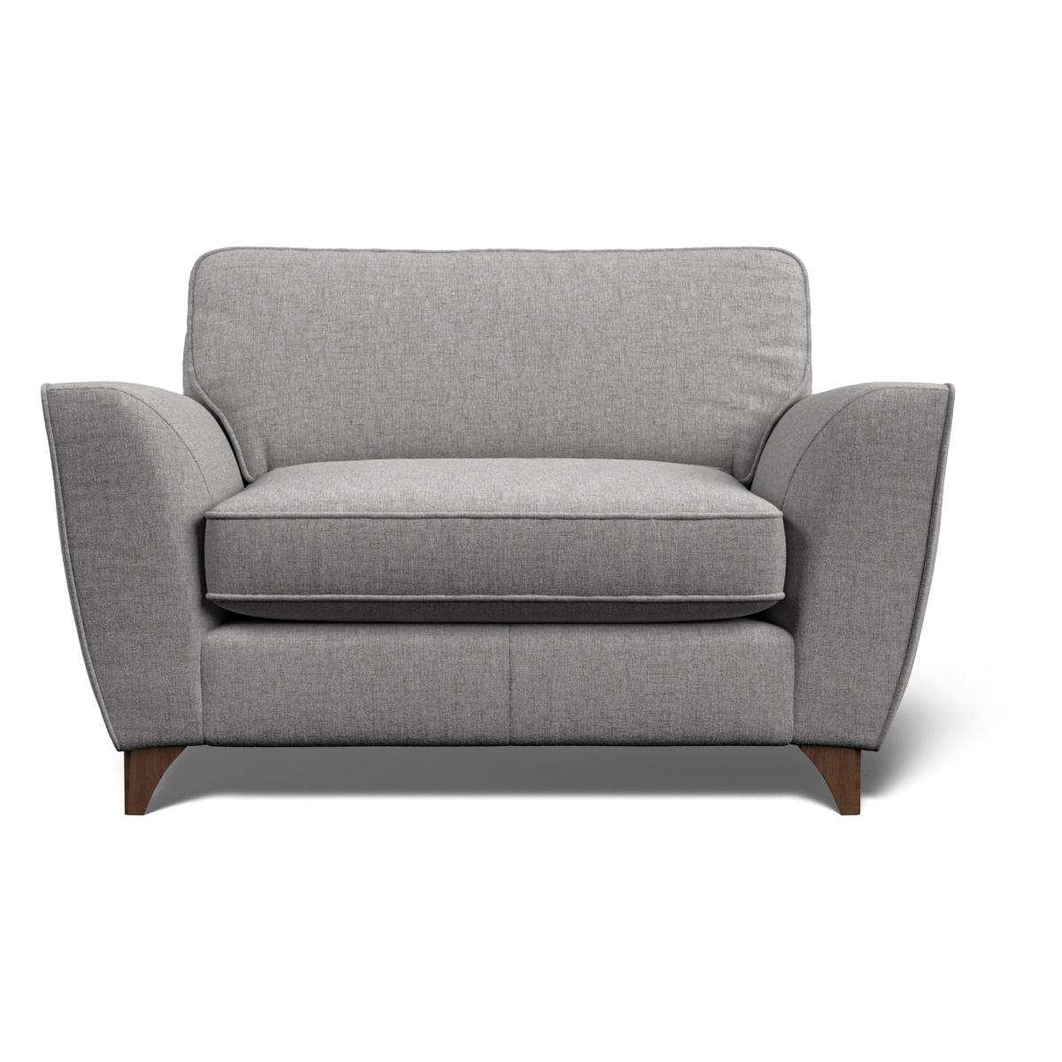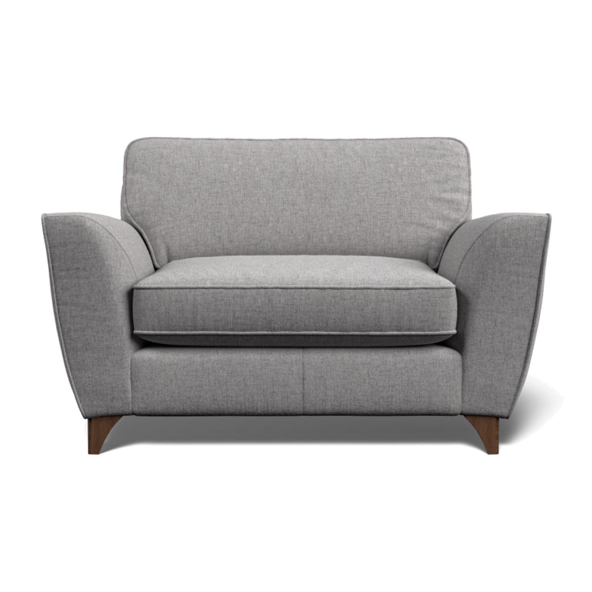 The Lennox Cuddler is stylish and unique. Featuring high comfort foam interiors and sustainable hardwood making the Lennox Cuddler a cozy addition to your home. Available in a range of fabrics with a choice of American Walnut or Weathered Oak for the feet. 2 x 40cm scatter cushions included. Dimensions Height: 90cm Width: 135cm Depth: 95cm Seat Height: 51cm Arm Height: 67cm Seat Depth: 60cm