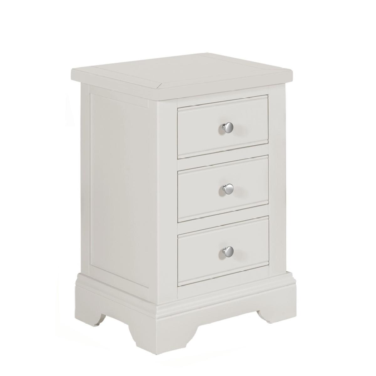 I’m a fan of the Loire bedside cabinet for its clean lines and versatile white finish - it sits equally well in coastal-inspired, farmhouse or Scandi interiors. The classic knob handles and raised plinth give it a subtle traditional touch without feeling outdated, while three drawers keep nighttime essentials neatly tucked away. For styling, keep your tabletop simple: a low-profile lamp on one side, a small tray for reading glasses and watch, and a potted succulent or single stem in a slim vase. Inside the drawers, use small fabric pouches or drawer dividers to organise chargers, notepads and personal items. Finish with a woven basket beside the unit for extra blankets or magazines.