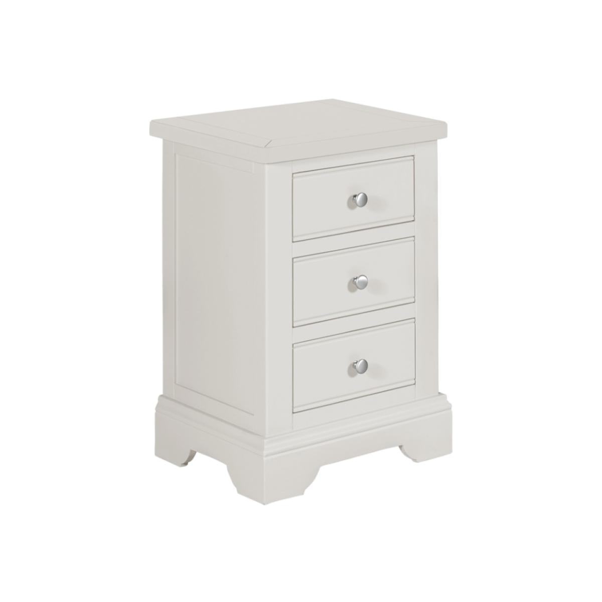 Berkeley Grey Painted 3 Drawer Bedside Table will create a modern, light feel in your bedroom. This Bedside Table crafted using grey painted finish with chrome handle would enhance the look and feel of any bedroom. Offering 3 spacious drawers, the Berkeley Bedside Table provides practical storage for all your bedside essentials and will allow you to keep your possessions safe and organized. MDF and Pine Material Grey Painted Finish 3 Drawer Chrome drawer knob Net Product Weight-14 kg Height: 65.6cm Width: 46.5cm Depth: 39.1cm