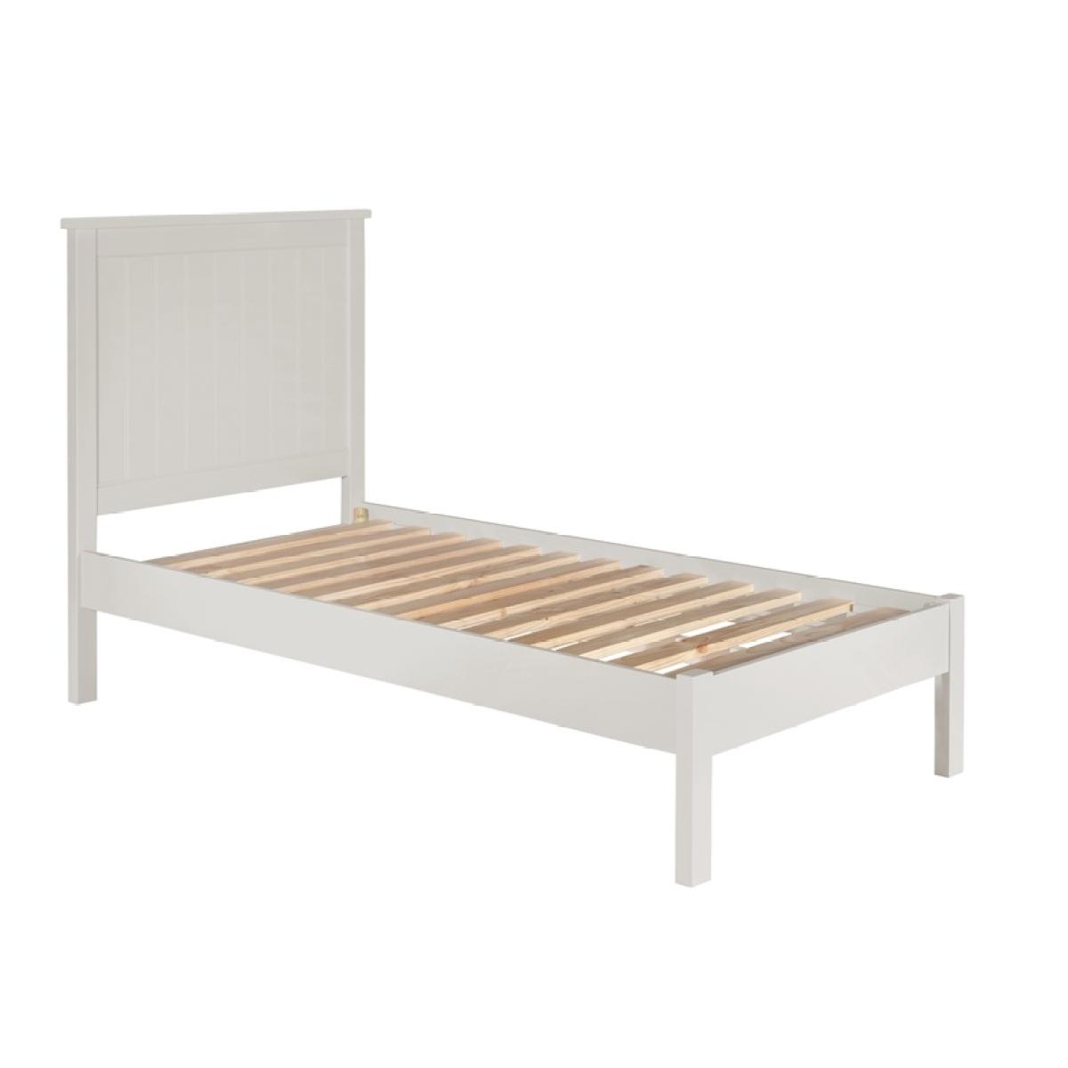 With a simple, contemporary design. The Loire Bed Frame is an ideal fit for many bedrooms. The design has a high head and low foot board design with radius corners painted with an appealing light grey colour. The feature of the built out shaped plinths on the front and sides bodes well alongside the framed end panels and radius corners on the tops. Single Size (3'0ft/ 90cm): Height: 120cm Width: 103cm Depth: 200cm Double Size (4'6ft/135cm): Height: 120cm Width: 148cm Depth: 200cm King Size (5'0/150cm): Height: 120cm Width: 163cm Depth: 211cm