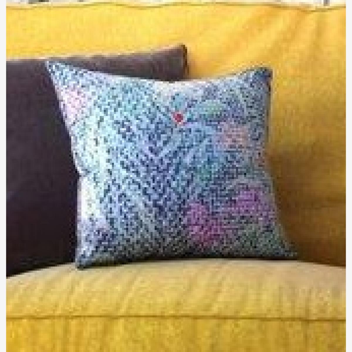 This scatter cushion is a great addition for adding a pop of colour and visual interest to both contemporary and eclectic interiors. I love the geometric pattern combined with the lively pink, blue, and white tones, making it versatile enough to work with neutral palettes or brighter colour schemes. It’s perfect for layering on a sofa or bed, injecting personality without overpowering the space. Practical styling tips include pairing it with textured throws or more subdued cushions to keep the look balanced. Given its vibrant design, it works especially well in casual living rooms, student flats, or beside statement furniture pieces, making it a versatile and eye-catching choice.