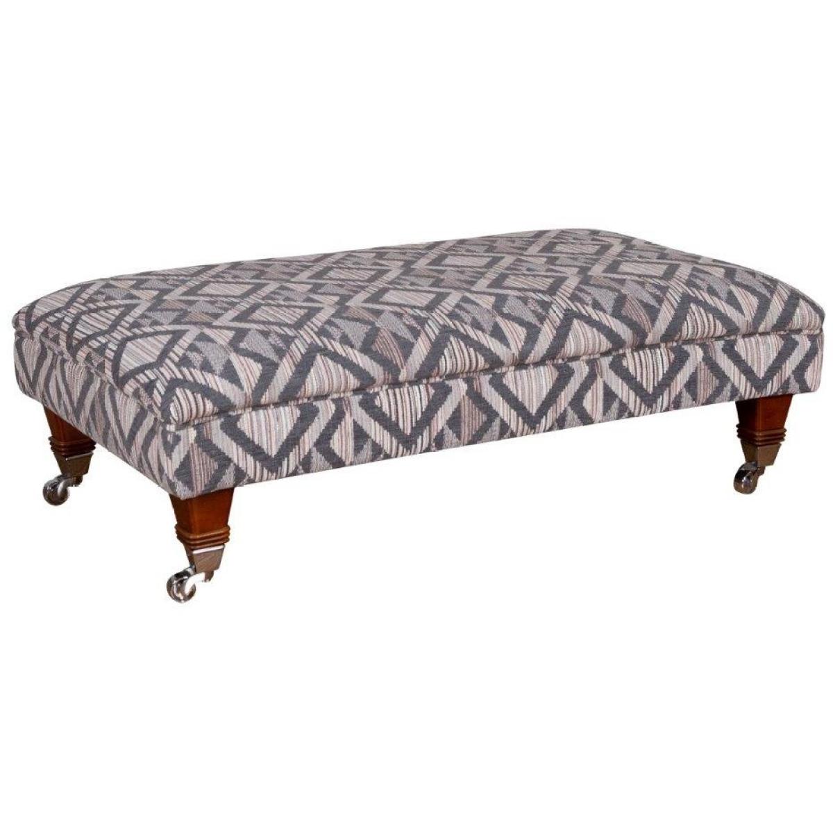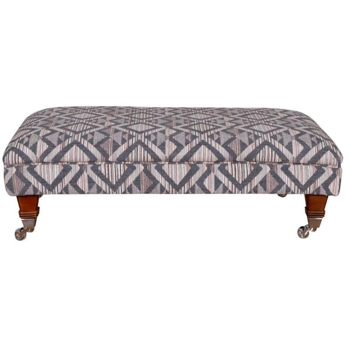 The Lorelai is a compact and stylish range. The Lorelai Large Style Footstool is a very stylish and contemporary looking piece of furniture. The ideal extra to finish off your new suites look. ExtraFlex Foam Seat Interior - A high density foam base seat interior with a hand-rolled carded fibre, channelled topper which provides both softness and support. To improve the longevity of your hand-made furniture, we recommend rotating cushions (where applicable). Available in a wide choice of stunning fabrics and leathers, from stylish plains to florals, stripes and 'on-trend' geometric patterns. The materials come in different price bands, however all materials are approved for domestic use, exceeding British standards for wear, colour-fastness and performance. Please note that all scatter cushions are covered in the main body fabric on the reverse. The feet are available in a choice of six wood finishes. Please note, wood is a natural product and will vary in shade/colour from item to item. Feet may require fitting. Features: Sprung seat and sprung back for added support Choice of solid wood feet *please note beech feet are only available with castor foot and sofa beds. Dowelled, screwed, glued and stapled joinery Hardwood and composite board frame Extraflex seat interior Dimensions: Width: 106cm Depth: 65cm Height: 35cm (with castors) or 31cm (with turned legs) All sizes are approx. please allow a +/- 2.5cm (1") tolerance. All screens vary in colour reproduction and whilst every effort has been made to display the colour as accurately as possible it is for guidance only.