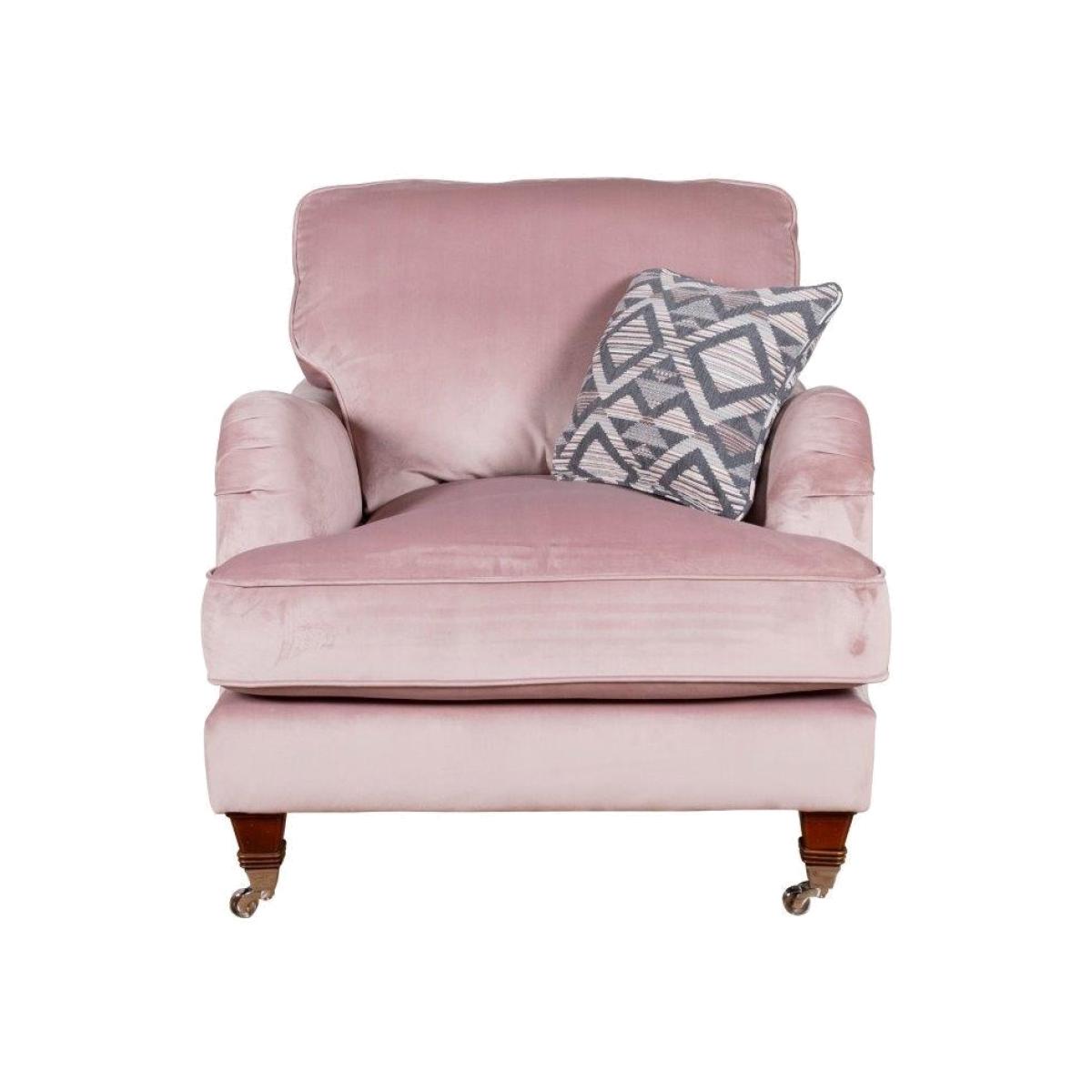 I love this armchair for its blend of classic charm and modern detail. The Verona leather lends a rich, textured feel that works beautifully in both traditional and contemporary interiors. Its soft pink hue adds a gentle touch of colour, making it a versatile accent piece. The geometric pattern on the cushions provides a subtle visual interest without overwhelming the space. For styling, it’s perfect paired with neutral or muted tones to let it stand out, and works well in cosy reading nooks or as a statement in a living room. Practical tips include mixing it with more subdued furniture to highlight its distinctive design or dressing it with layered throws and cushions for an inviting, lived-in look. The casters make positioning flexible, ideal for changing up arrangements with ease.