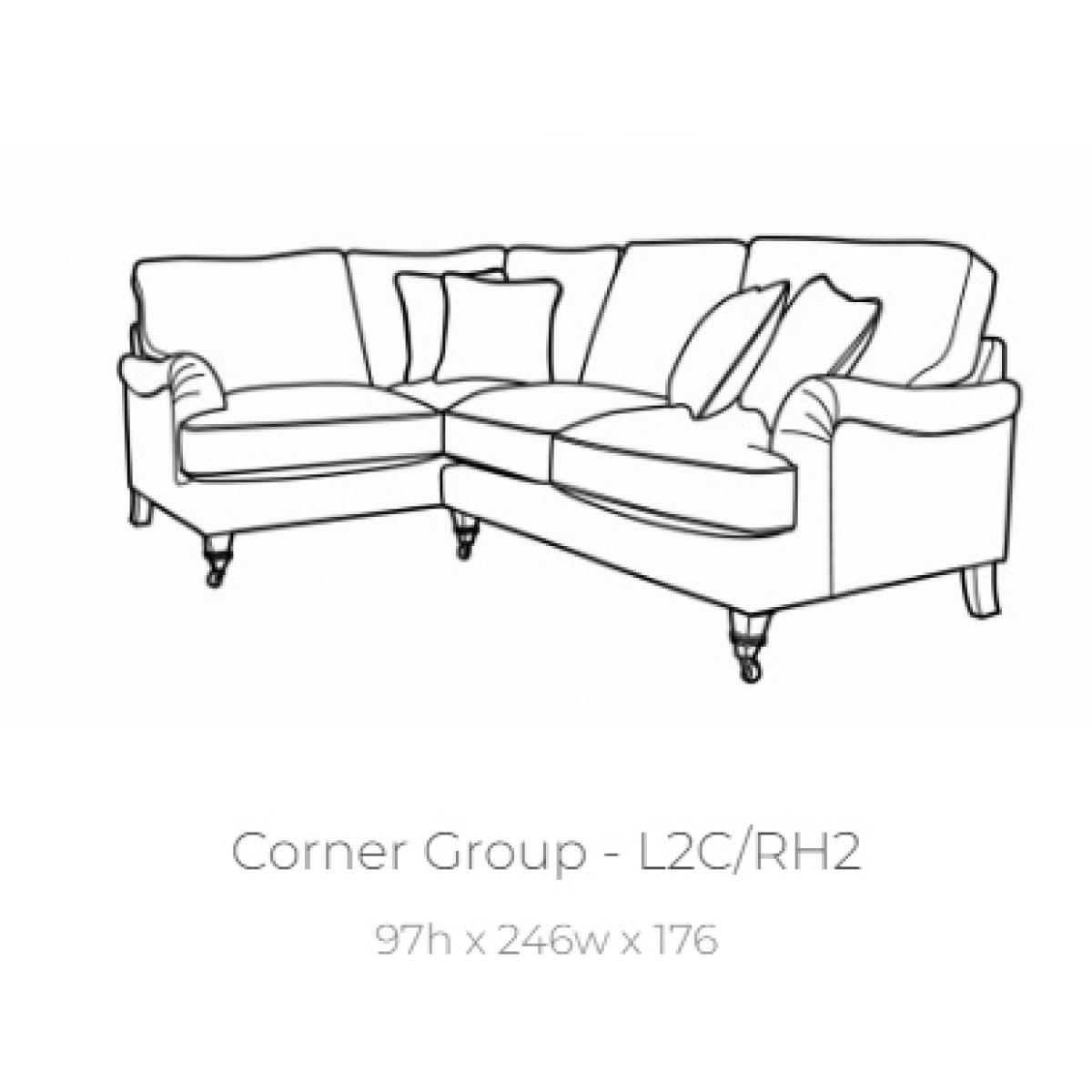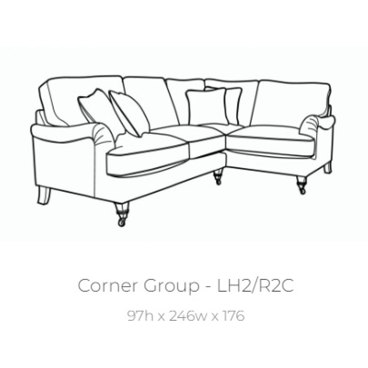 The Lorelai is a compact and stylish range. The Lorelai has beautiful curved arms with deep filled seat cushions and fibre filled back cushions which combined gives a fantastic sit whilst giving all the support needed. ExtraFlex Foam Seat Interior - A high density foam base seat interior with a hand-rolled carded fibre, channelled topper which provides both softness and support. To improve the longevity of your hand-made furniture, we recommend rotating cushions (where applicable). Available in a wide choice of stunning materials , from stylish plains to florals, stripes and 'on-trend' geometric patterns. These come in different price bands, however all are approved for domestic use, exceeding British standards for wear, colour-fastness and performance. Please note that all scatter cushions are covered in the main body fabric on the reverse. The feet are available in a choice of six wood finishes. Please note, wood is a natural product and will vary in shade/colour from item to item. Feet may require fitting. Features: Sprung seat and sprung back for added support Reversible Fibre filled backs for added comfort Fibre filled scatters included Choice of solid wood feet *please note beech feet are only available with castor foot and sofa beds. Dowelled, screwed, glued and stapled joinery Hardwood and composite board frame Extraflex seat interior 4 Seater Corner Sofa Dimensions: LH2/R2C - W 246cm x D 176cm x H 97cm (Castor) H 93cm (Turned). L2C/RH2 - W 246cm x D 176cm x H 97cm (Castor) H 93cm (Turned). All sizes are approx. please allow a +/- 2.5cm (1") tolerance. All screens vary in colour reproduction and whilst every effort has been made to display the colour as accurately as possible it is for guidance only.