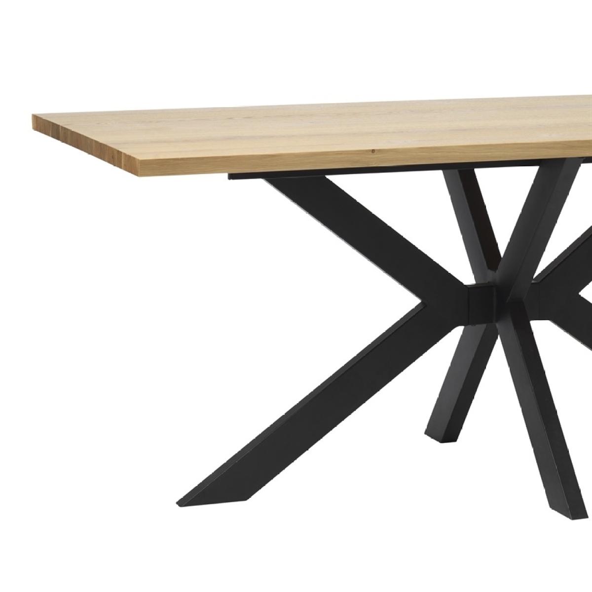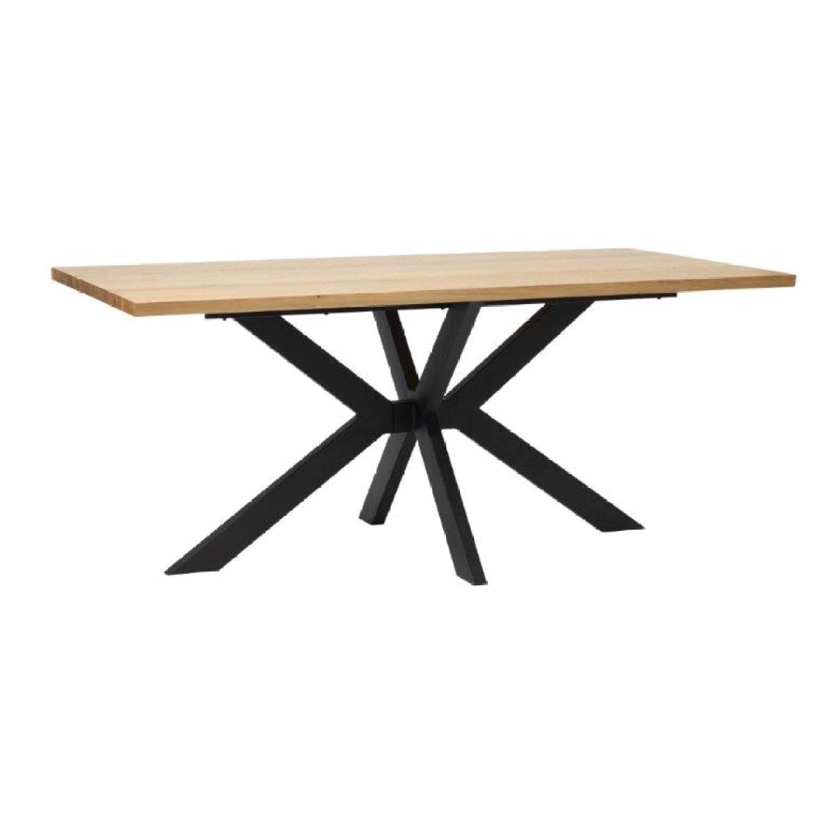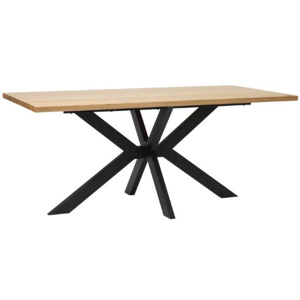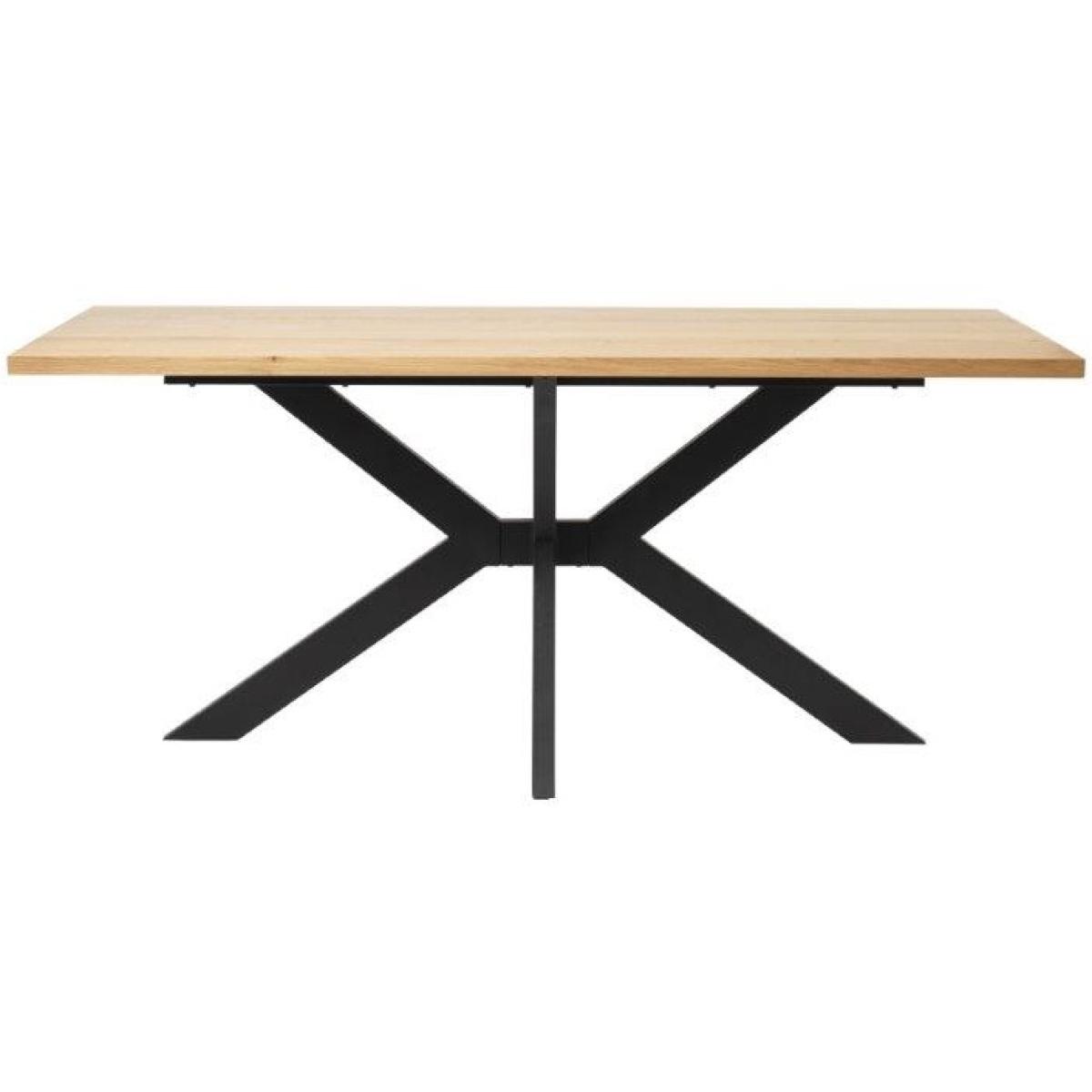 Marlowe mixes the industrial vibe with a warm touch of oak veneers. This table is 90 x 180cm with an attractive and eye-catching star base in a modern black metal finish. Having more guests round for a dinner party? An optional 45cm extension leaf is available as an extra - one can be fitted to each end of the table to ensure everyone can fit comfortably around the table. Features: Natural Oak Veneer 6 - 8 seating capacity Matching extension leaves available Arrives flatpacked - home assembly is required  Dimensions: Height 76cm Length 180cm Depth 90cm All screens vary in colour reproduction and whilst every effort has been made to display the colour as accurately as possible it is for guidance only.