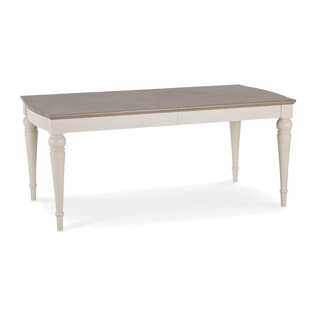 Finished with a muted grey paintwork and wonderfully contrasting light wood top, these dining tables extend with ease to accommodate those extra people as and when required. Simply pull the table leaves out to the side to reveal a handy extension leaf contained within. This table would look great in a country kitchen.  Dimensions:4-6 Seater: Open - 180cm W x 90cm D x 77cm H. Closed - 140cm W x 90cm D x 77cm H6-8 Seater: Open - 225cm W x 95cm D x 77cm H. Closed - 180cm W x 95cm D x 77cm H Partial assembly required All screens vary in colour reproduction and whilst every effort has been made to display the colour as accurately as possible it is for guidance only.