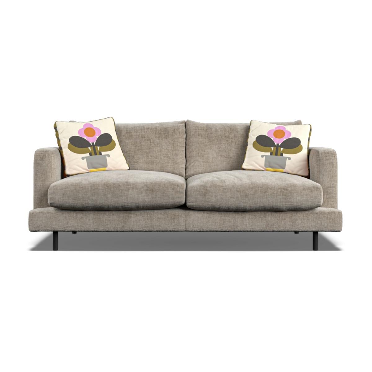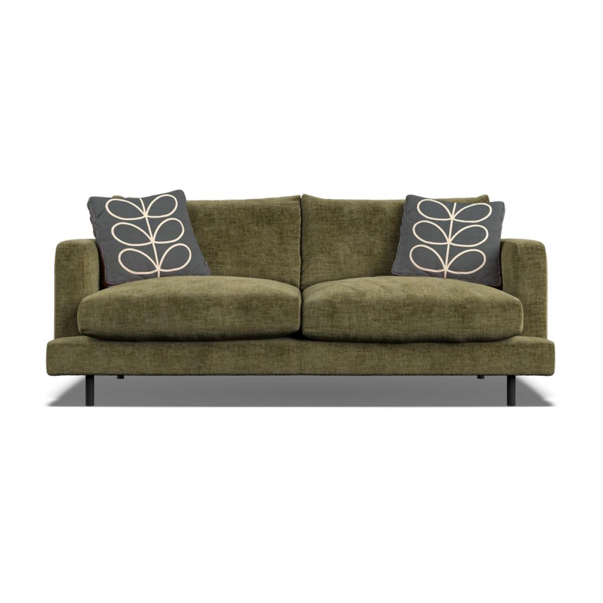 Orla Kiely's upholstered furniture collection brings to life her playful combination of colour and pattern to add a pop of fun to your everyday. Each piece is directly influenced by Orla to apply her signature modern twist to mid-century style. Every item is handmade to order in the UK, allowing for endless authentic Orla Kiely looks to be created using the wide range of colour and exclusive pattern available. The range consists of furniture to suit any space, from large corner sofas to small accent chairs and stools, with all hardwood timber frames backed by a 10 year manufacturer warranty. Combining the best of British craftsmanship with the design excellence of Orla Kiely, each one of our sofas is hand-made to order in the UK. Each piece in the range has been personally approved by Orla herself and all fabrics have been hand-picked by the Queen of Prints. Every sofa features official brand detailing such as woven tags and the signature Stem printed lining cloth. The frames are made from hard wood, sourced from sustainable forests, and are pinned, screwed, and glued to ensure maximum strength and stability. Each piece is built to last and comes with a 10 year guarantee on all hardwood frames and steel springs. The Larch has ultra-clean lines, a low-profile stance and narrow set back arms. Available either with architectural black powder-coated steel legs for a light, floating appearance, or more traditional tapered wood. Subtle features like the wrap over front seat pads and lowbacks give Larch a laid-back modern aesthetic. Dimensions Height 79cm Width 190cm Depth 95cm. Seat height: 44cm Seat width: 168cm Seat depth: 60cm Arm height: 63cm Leg height: 15cm Seat cushions are composed with a feather topper for a super-comfortable sit. Available in a colourful range of velvets and textured fabrics, plus exclusive Orla Kiely scatters of your choice. All screens vary in colour reproduction and whilst every effort has been made to display the colour as accurately as possible it is for guidance only.