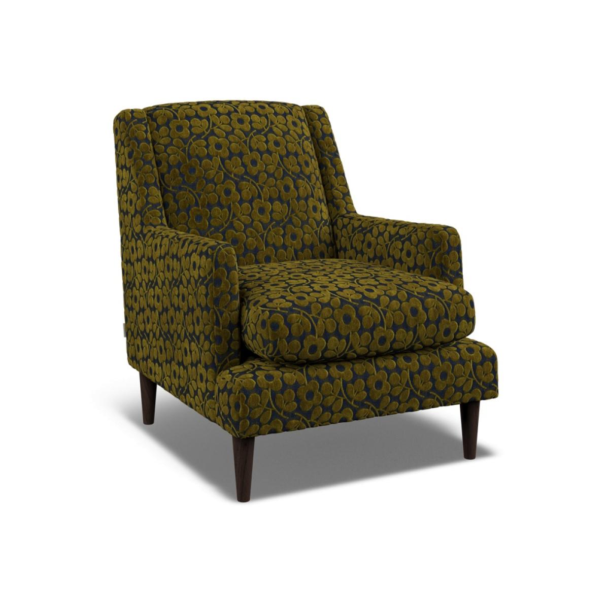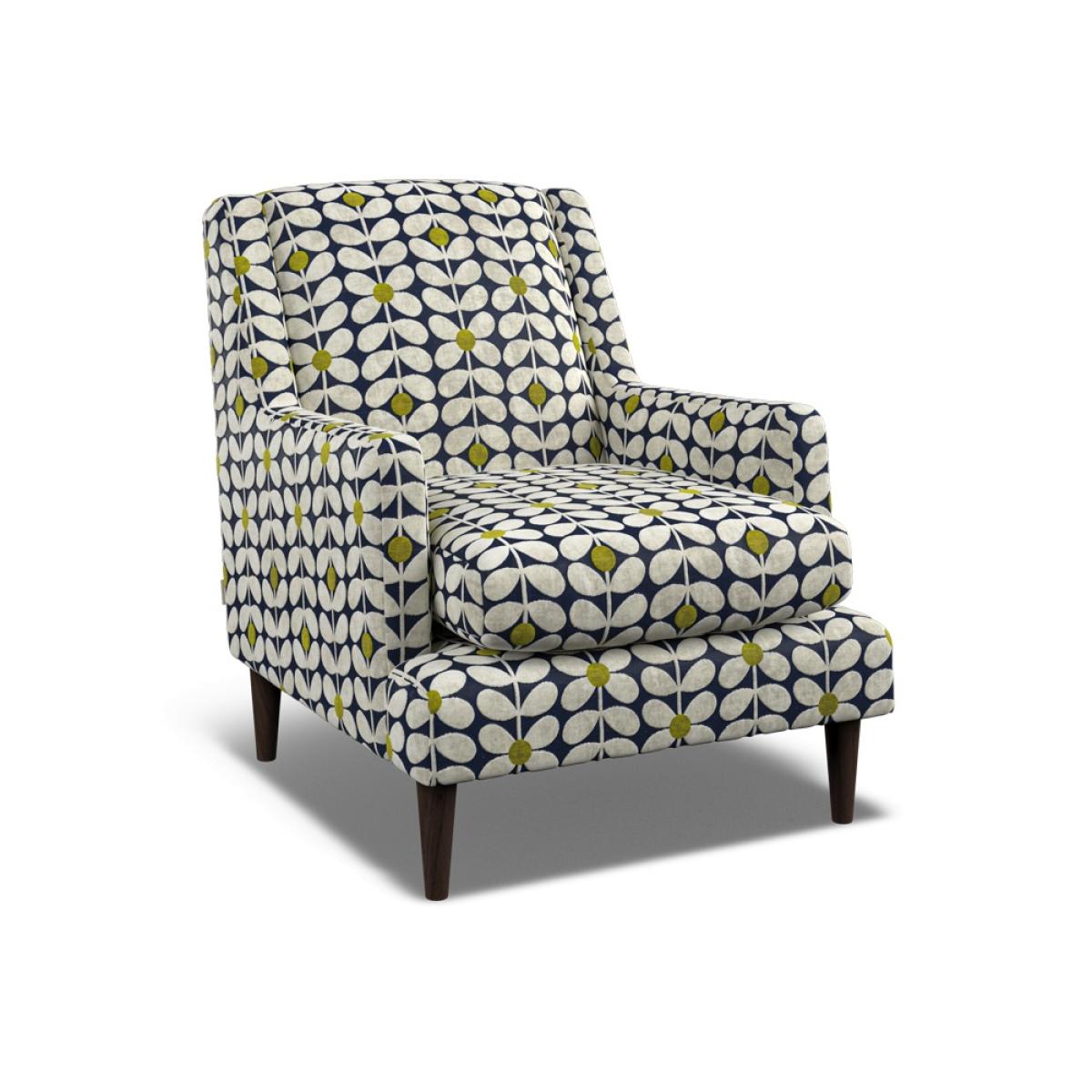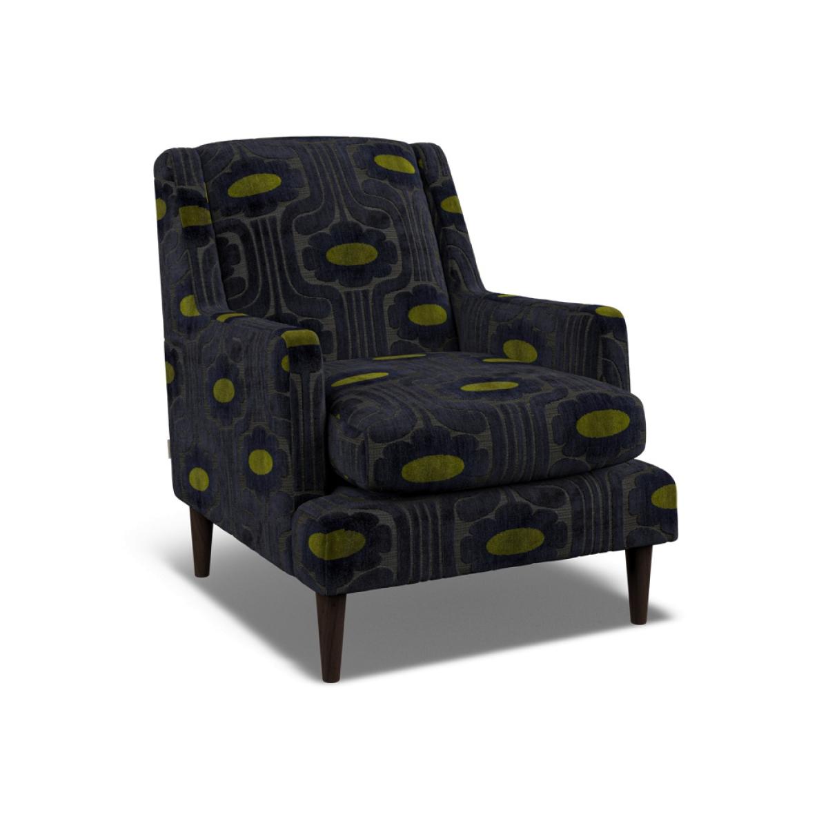Orla Kiely's upholstered furniture collection brings to life her playful combination of colour and pattern to add a pop of fun to your everyday. Each piece is directly influenced by Orla to apply her signature modern twist to mid-century style. Every item is handmade to order in the UK, allowing for endless authentic Orla Kiely looks to be created using the wide range of colour and exclusive pattern available. The range consists of furniture to suit any space, from large corner sofas to small accent chairs and stools, with all hardwood timber frames backed by a 10 year manufacturer warranty. In addition to our sofa range, we have designed a collection of vintage-inspired accent chairs. A great way to add style to any room, these pieces can be ordered on their own or with any of our sofa ranges. Available in a large selection of official Orla Kiely fabrics, these authentic pieces of furniture are sure to become cherished items in any home for years to come. Mid-century style gets a modern update with the Spiddal Accent Chair, the tapered solid wood legs support a slimline frame with a sleek geometric silhouette inspired by 1970?s Modernism. Available in a selection of all over Orla Kiely luxury patterned fabrics. Dimensions H 87cm x W 73cm x D 88cm. All screens vary in colour reproduction and whilst every effort has been made to display the colour as accurately as possible it is for guidance only.