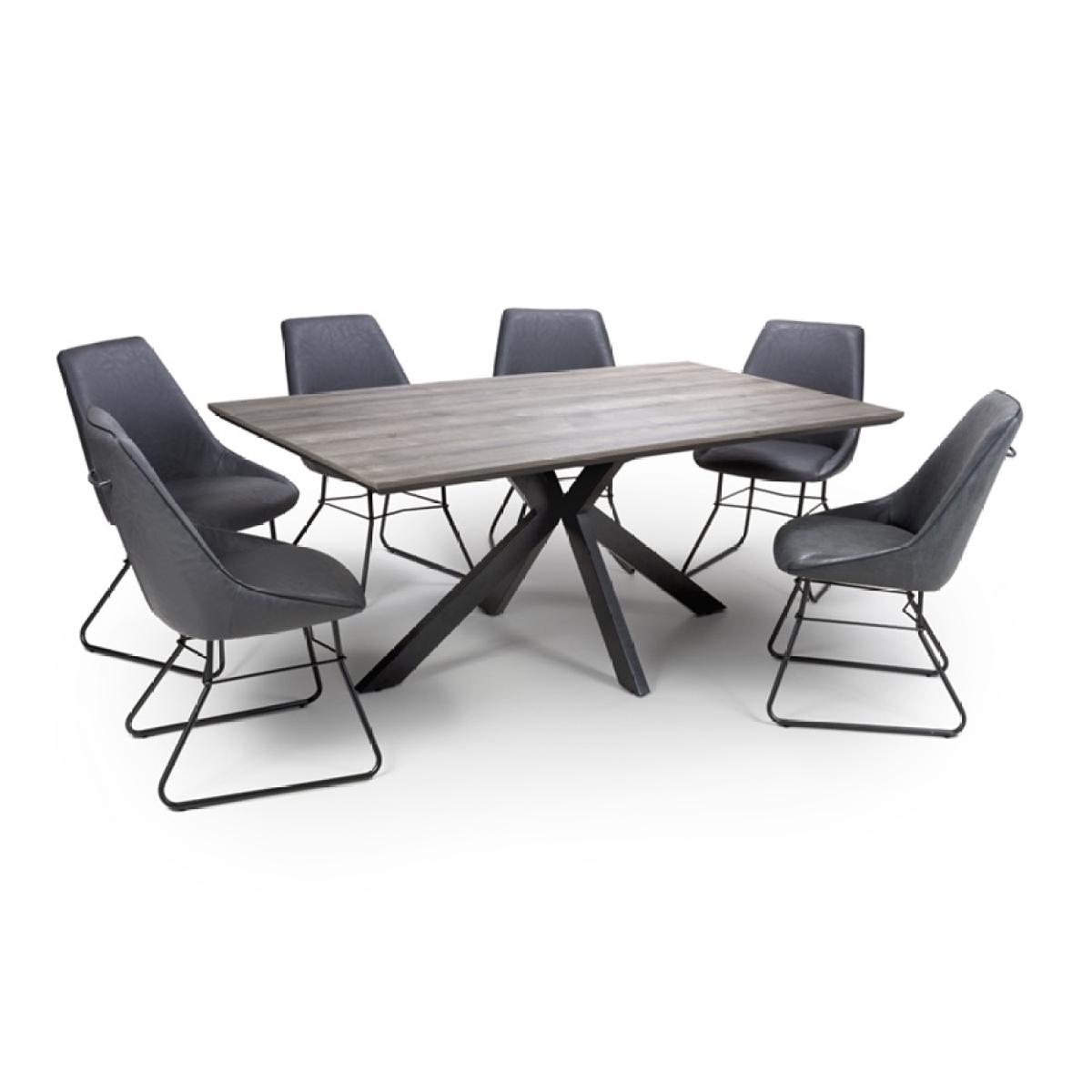 The Phoenix Grey Dining tables has a lot to shout about. Smar. Tops Technology (Heat, Stain and Scratch resistant) is applied to the wood effect tops, which comes in a fabulous Grey finish and a designer black metal base all marry together to form these special statement pieces. Add chairs or benches to create your own unique place ready to entertain family and friends. Height: 76cm Width: 180cm Depth: 100cm All screens vary in colour reproduction and whilst every effort has been made to display the colour as accurately as possible it is for guidance only.