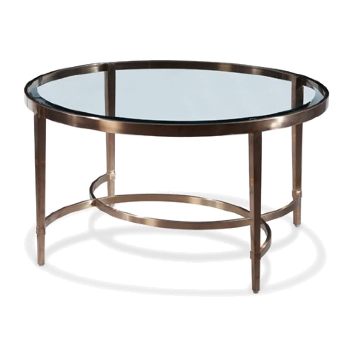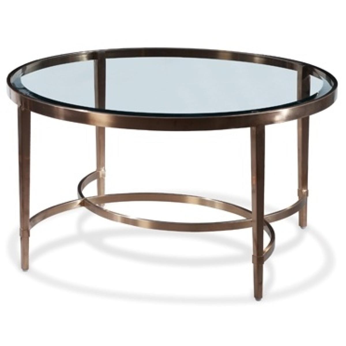 Downtown Ritz Circular Glass Coffee Table, Brass