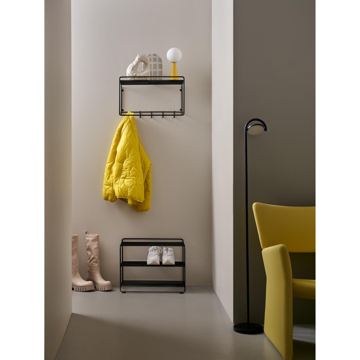 The Downtown shoe shelf from Maze comes in a minimalist and function-inspired design of powder-coated metal wire. The shelf's material is partially recycled, which makes it a sustainable choice, both in terms of durability and the environment. The Downtown shoe shelf adds an elegant look to the home and fits even the smallest hallway thanks to its neat design and narrow width.