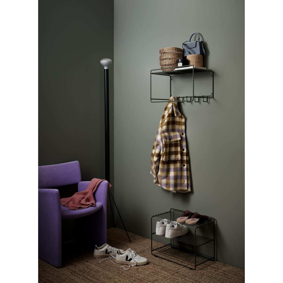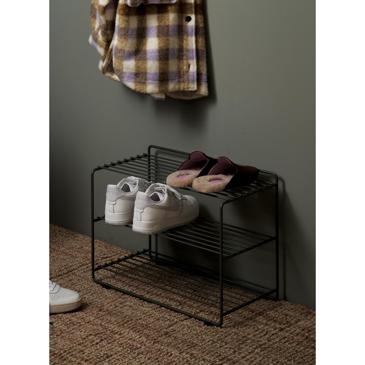 The Downtown shoe shelf from Maze comes in a minimalist and function-inspired design of powder-coated metal wire. The shelf's material is partially recycled, which makes it a sustainable choice, both in terms of durability and the environment. The Downtown shoe shelf adds an elegant look to the home and fits even the smallest hallway thanks to its neat design and narrow width.