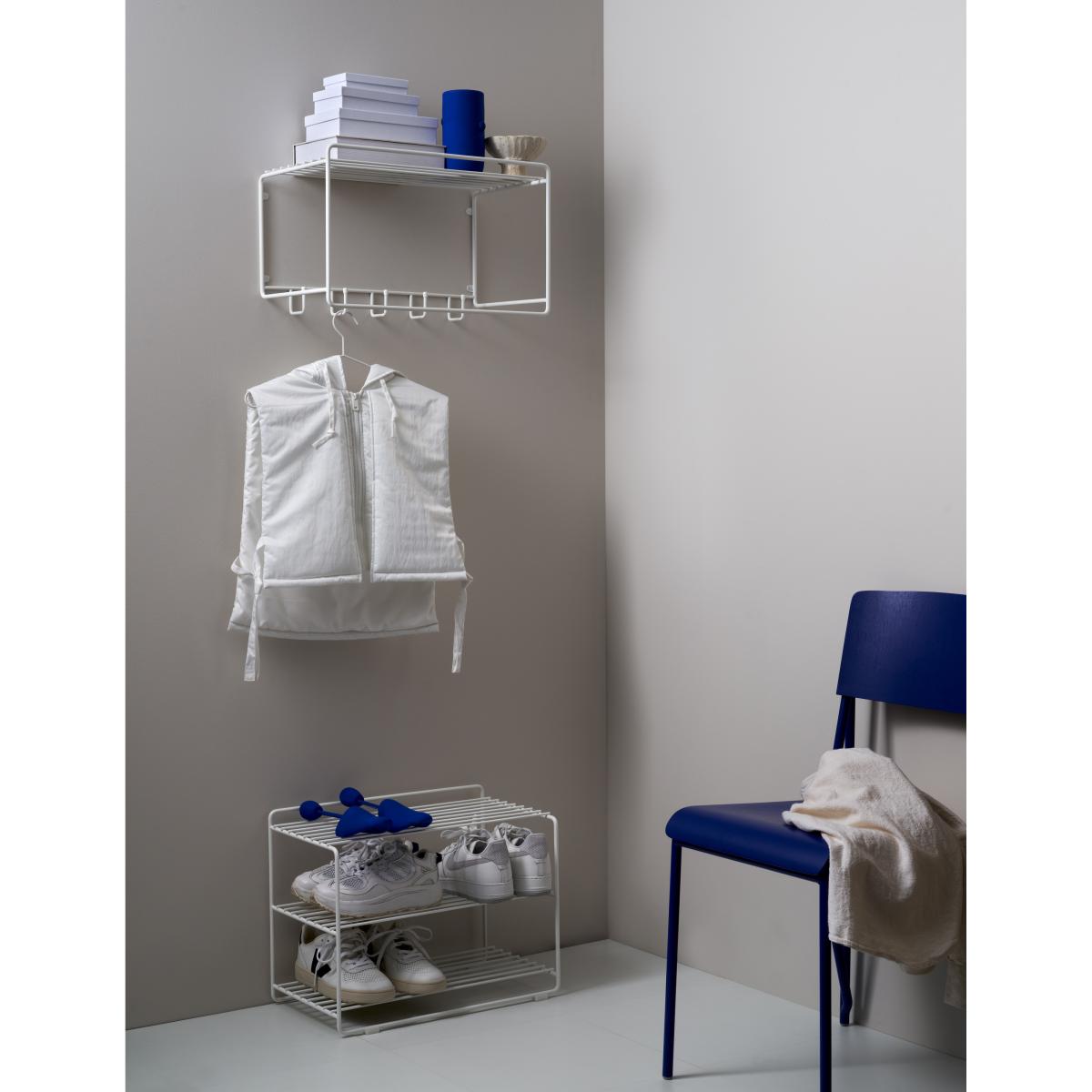 The Downtown shoe shelf from Maze comes in a minimalist and function-inspired design of powder-coated metal wire. The shelf's material is partially recycled, which makes it a sustainable choice, both in terms of durability and the environment. The Downtown shoe shelf adds an elegant look to the home and fits even the smallest hallway thanks to its neat design and narrow width.
