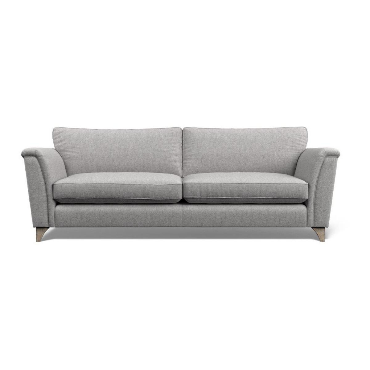 Oozing style and sophistication, this extra-large sofa carves a new and exciting aesthetic. Inspired by design detailing of the generations past, the arm carries a detail that wraps from the front of the arm, round to the back, creating an effortless and stylist look. Perfect for those who settle for nothing less than style and comfort. Foot colours are available in either American Walnut or Weathered Oak. Scatter cushions are available as optional extras. 4 scatter cushions included, 2 x Medium (46cm) and 2 x Small (40cm).  Extra Large Sofa Dimensions: Height: 85cm Width: 229cm Depth: 97cm Arm Height: 68cm Seat Height: 49cm Seat Depth: 60cm Foot Height: 66cm All screens vary in colour reproduction and whilst every effort has been made to display the colour as accurately as possible it is for guidance only.