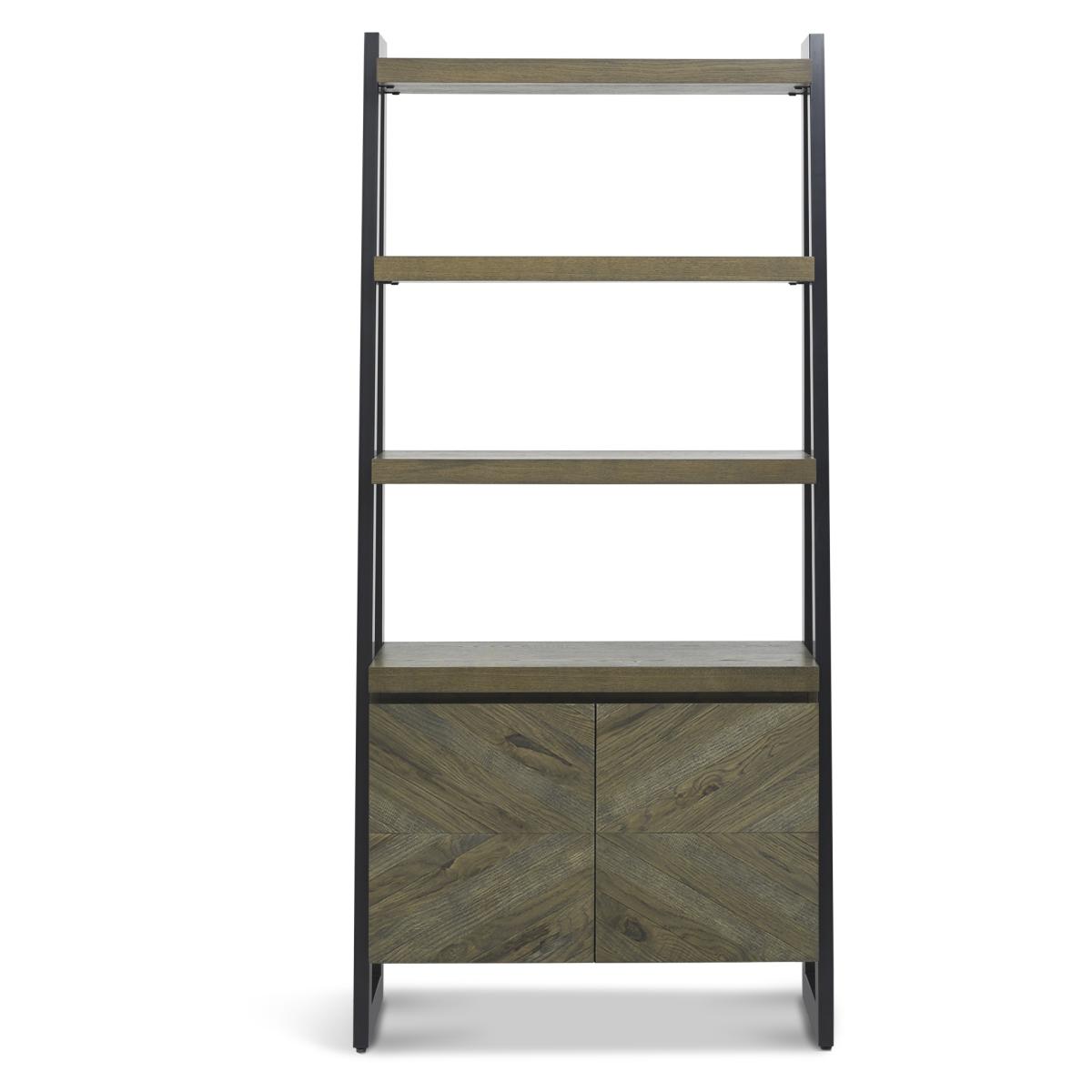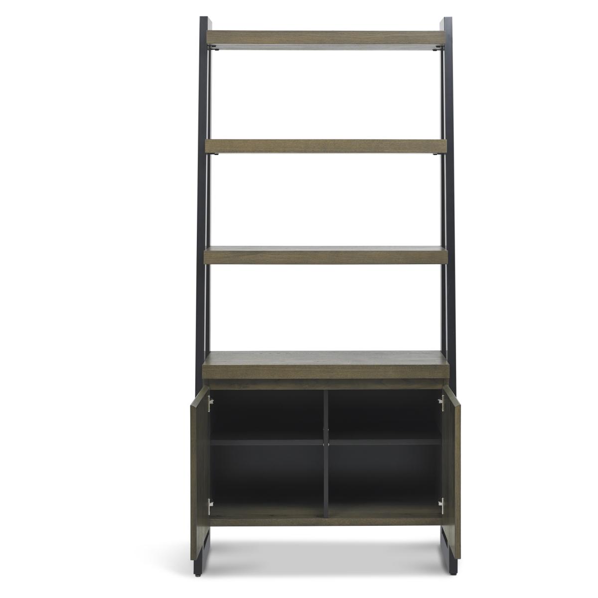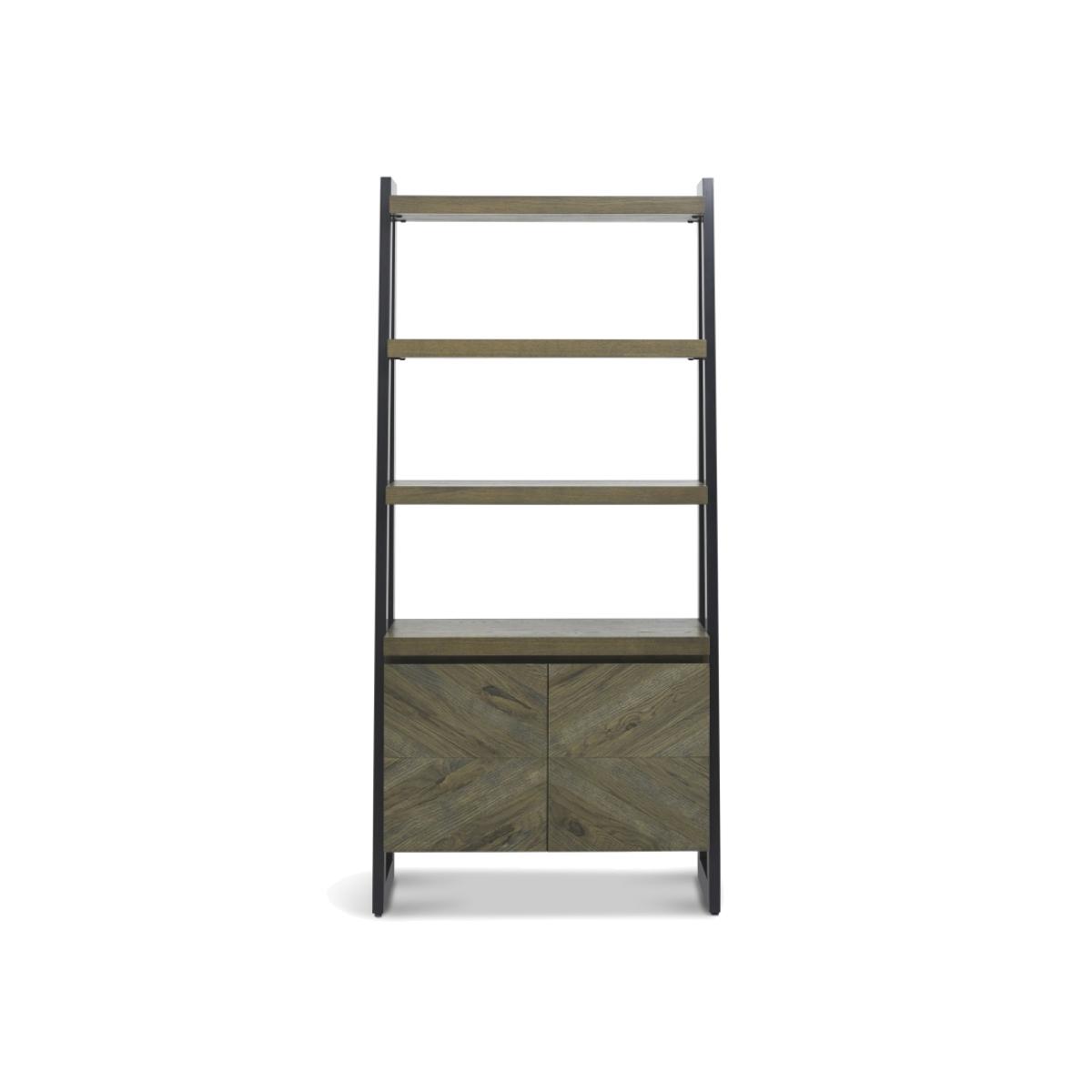 This Winnipeg Fumed Oak Open Display Unit showcases bold design with a combination the geometrical & linear shapes of the Winnipeg cabinet range, paired with the natural lines of the elliptical and circular tables to create a compelling and slightly eclectic look. The striking saw cut fumed rustic oak marquetry tops on the thick table tops and cabinet doors contrast beautifully against the large welded peppercorn powder coated metal bases, creating a range that successfully blends intricate craftsmanship and indulgently warm tones with an on trend industrial aesthetic. Each of these hand-crafted pattern tops and laminated fumed rustic oak cabinet frames are wire brushed and distressed to give a rustic look and tactile feel, making the most of the beautiful and varied grain of oak.   Assembly required. Height: 196cm Width: 91cm Depth: 39cm