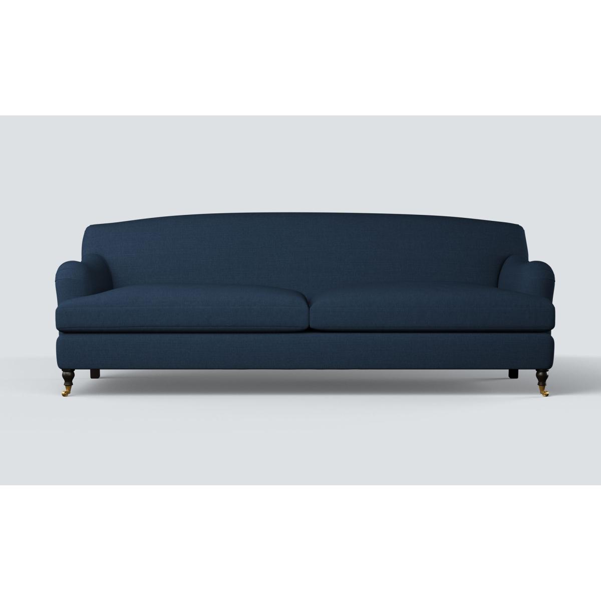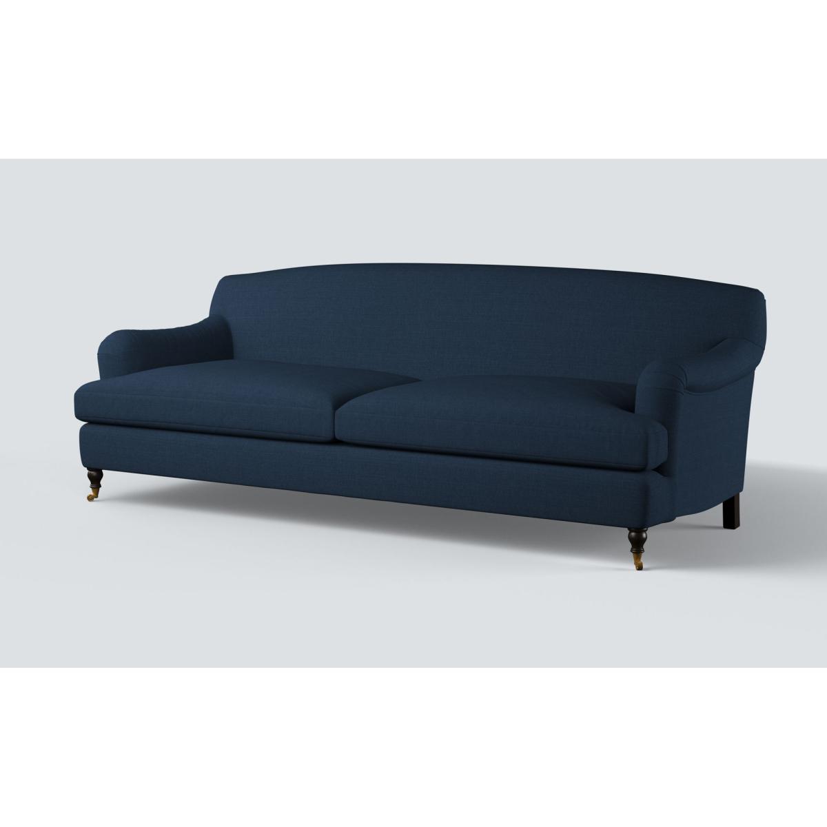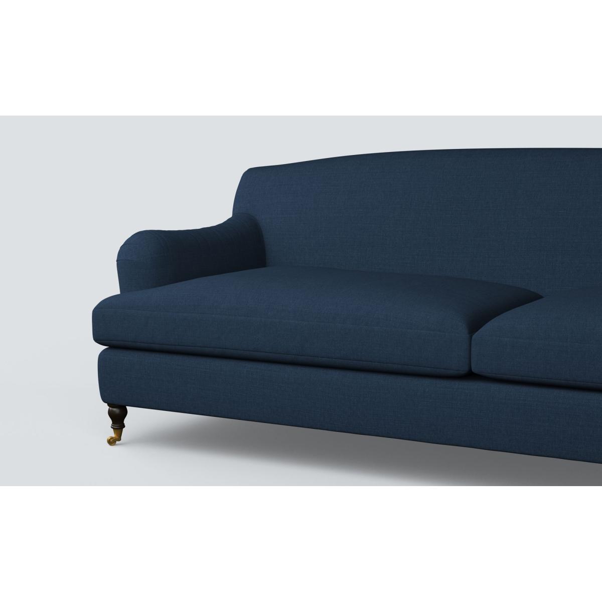 Our Doze collection evokes classic styling of a country manor. Made in England and designed with your comfort in mind, this collection features elegant curves, four sumptuous foam and feather filled cushions and traditional brass castor wheeled legs. Available in a range of luxe fabrics the Doze can be personalised to perfectly suit your interior space. Pictured: three seater sofa in Midnight Stain Guarded Velvet, and two and a half seater sofa in Forest Green Stain Guarded Velvet. Handmade in 8-12 weeks and then delivered usually within 10 working days.