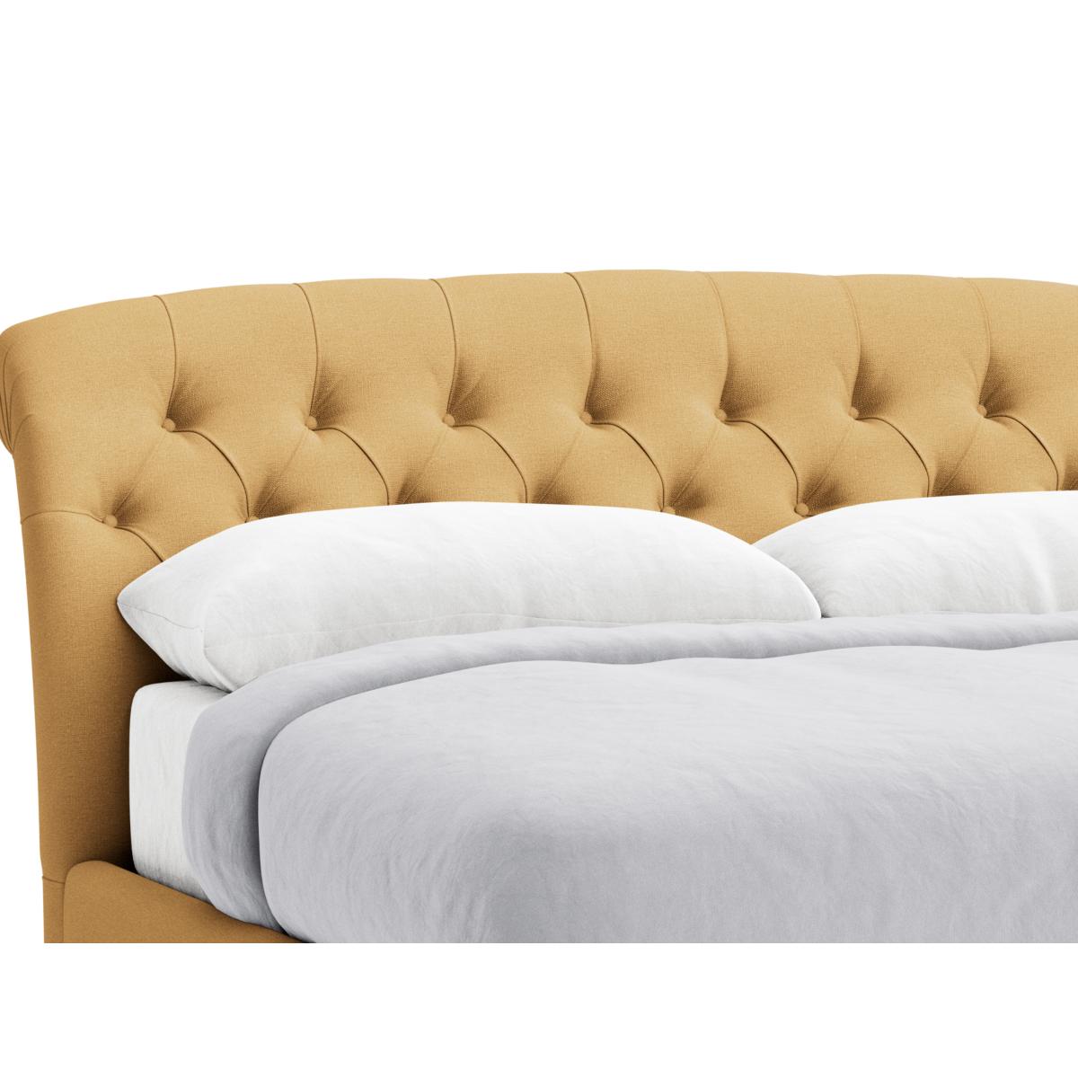 This seriously soft butterball curves in all the right places. With those deep buttons, that scrolling headboard and satisfyingly padded sides, it takes squish to the next level.