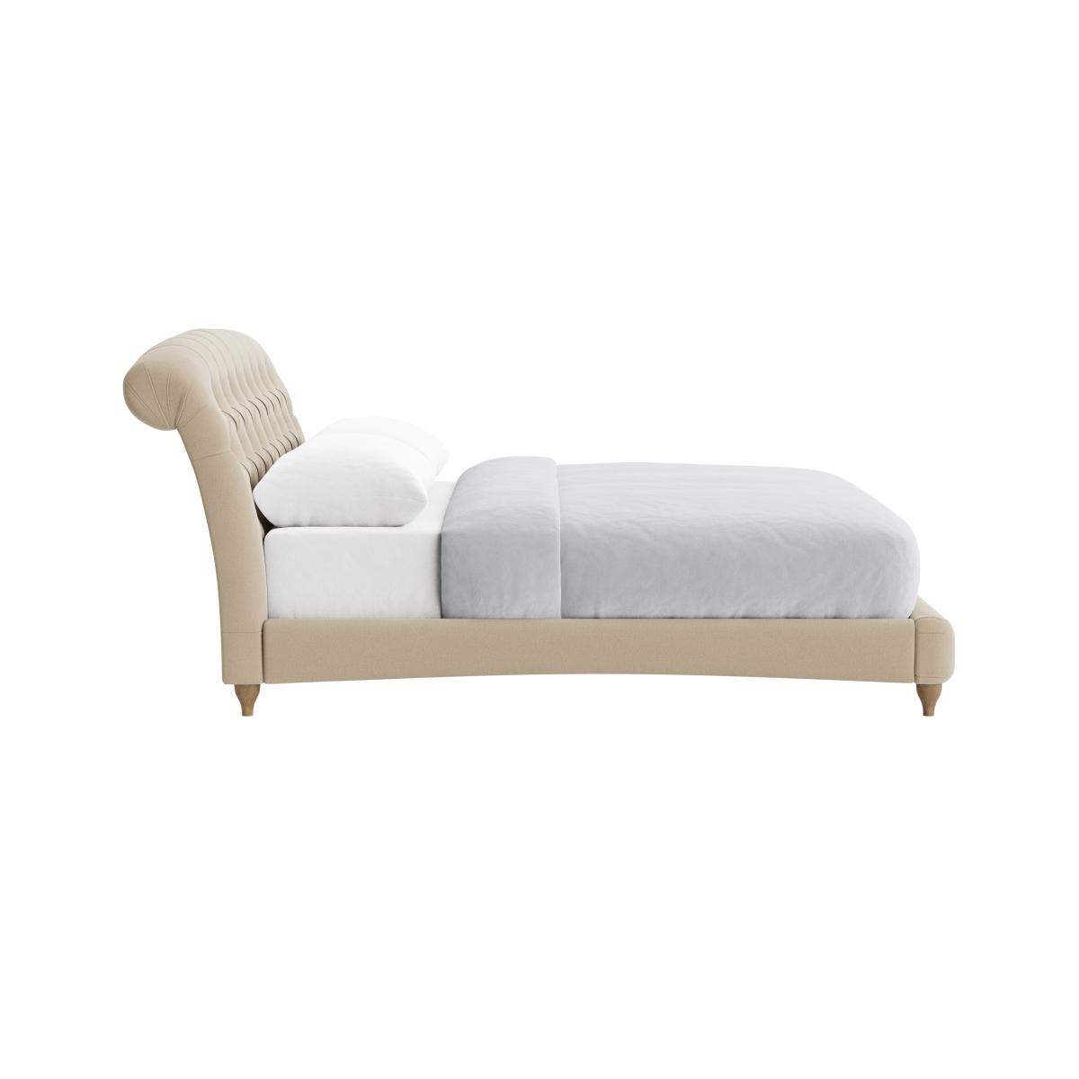 I love this bed frame for its timeless, understated elegance and plush detailing. Its neutral tone makes it versatile enough to slot into a range of interiors, from classic Victorian spaces to more contemporary minimalist schemes. The tufted headboard adds a touch of sophistication, creating a cosy yet polished look. Practical styling tips include pairing it with crisp bed linens and layered throws to enhance its inviting vibe, while supporting a mix of textured cushions for added depth. It works particularly well in bedrooms that aim for a calm, refined aesthetic-whether styled with vintage bedside tables for a classic look or sleek modern bedside units for a more pared-back feel.