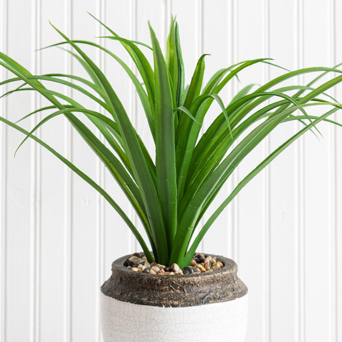 Set in a stylish ceramic pot with a crackle effect glaze, this tropical green dracaena has a realistic finish, making it ideal for displays on shelves, sideboards and tables. Requiring little to no maintenance, this beautiful artificial piece will look fabulous in any room of the house.
