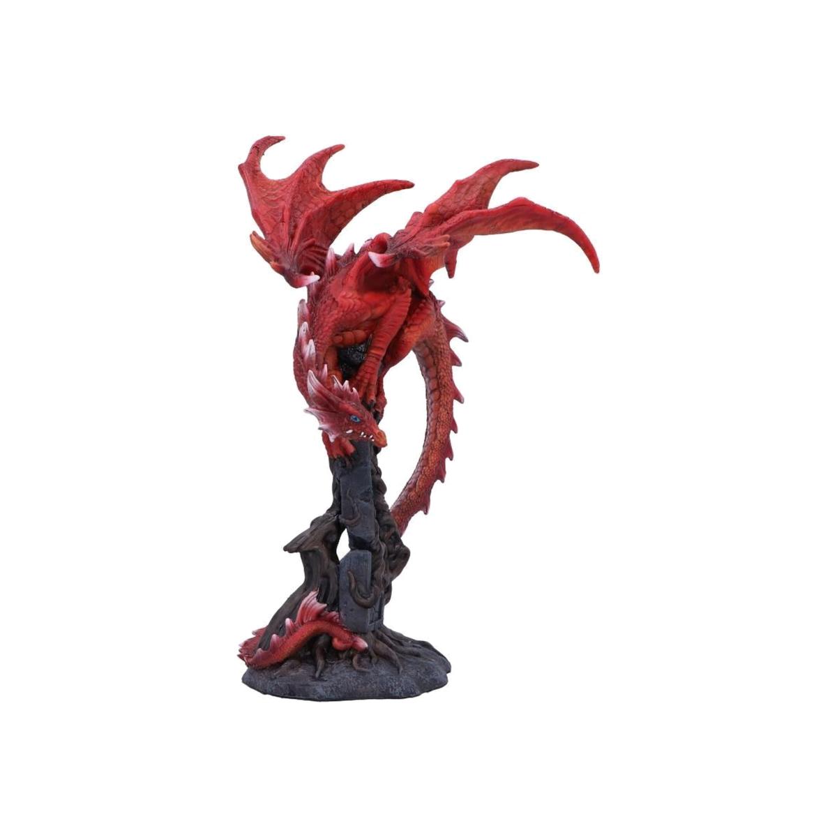 Awaken the fiery enchantment with our Draconic Roots figurine from Nemesis Now's value collection. This grand 28cm figurine showcases a large red dragon, its majestic form adorned with captivating orange highlights. Balanced with wings spread and tail gracefully touching the ground, the dragon perches atop a stone pillar, evoking the atmosphere of ancient ruins. The stone structure, reminiscent of a castle's remnants, is entwined with intricate tree roots, adding a touch of nature's embrace to the scene. Meticulously crafted from the finest resin and hand-painted with precision, this figurine is a testament to quality and artistry. Explore our extensive range of dragon-themed giftware, tailored for those who harbor a profound appreciation for magical creatures and medieval mythos.