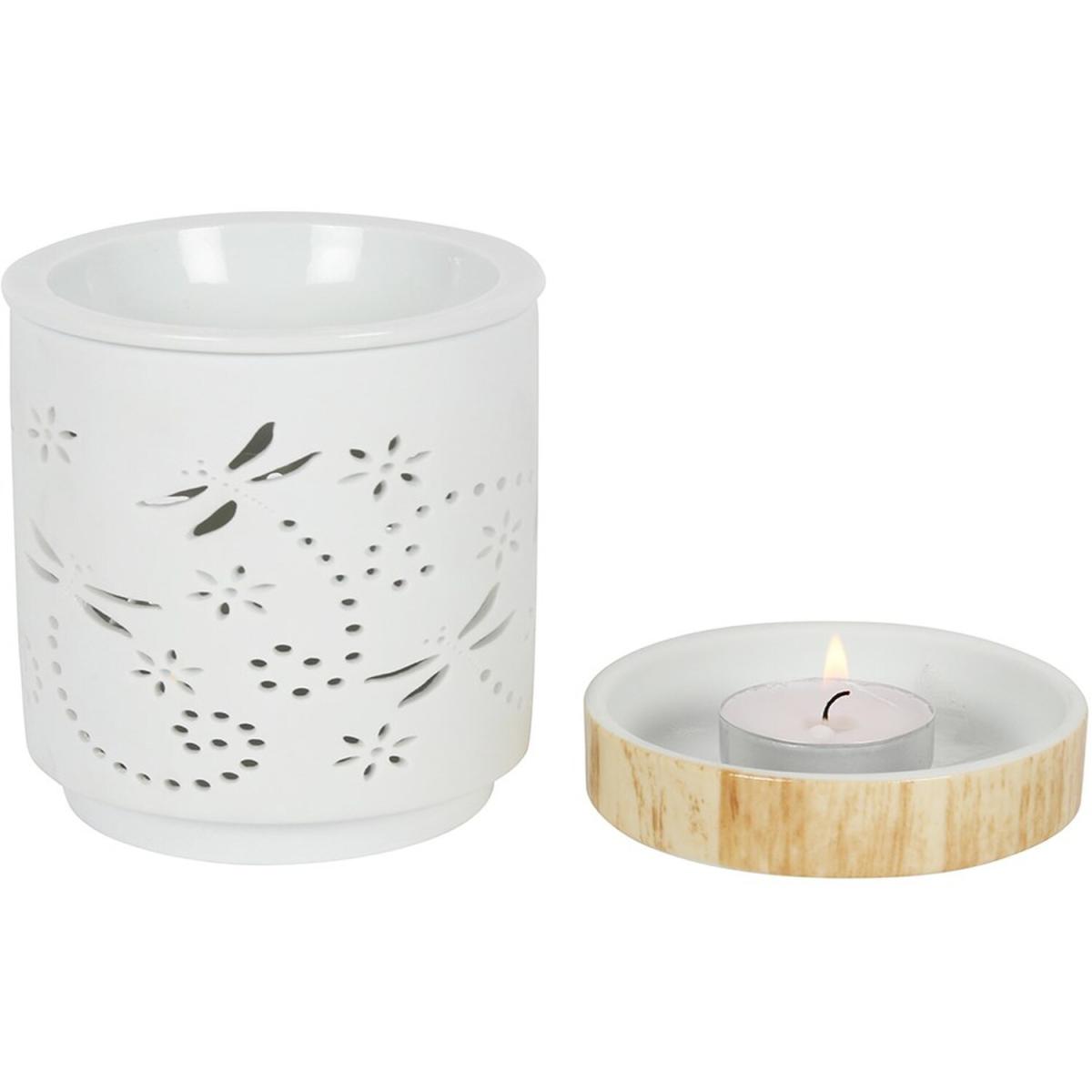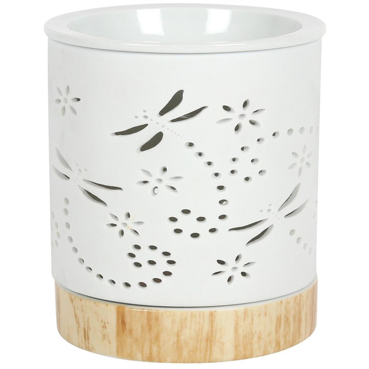 This matte ceramic oil & wax melt burner has a pretty dragonfly detail and a ceramic base with a wood-effect finish giving it a contemporary feel. The fragrance diffuses slowly for long-lasting benefits.
