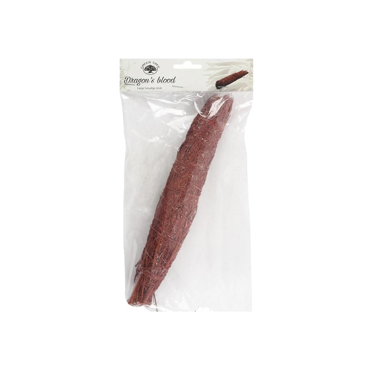This hand-tied smudge stick has been coated with Dragon's Blood resin which is a popular blend of sap from exotic trees for a distinctive earthy scent.