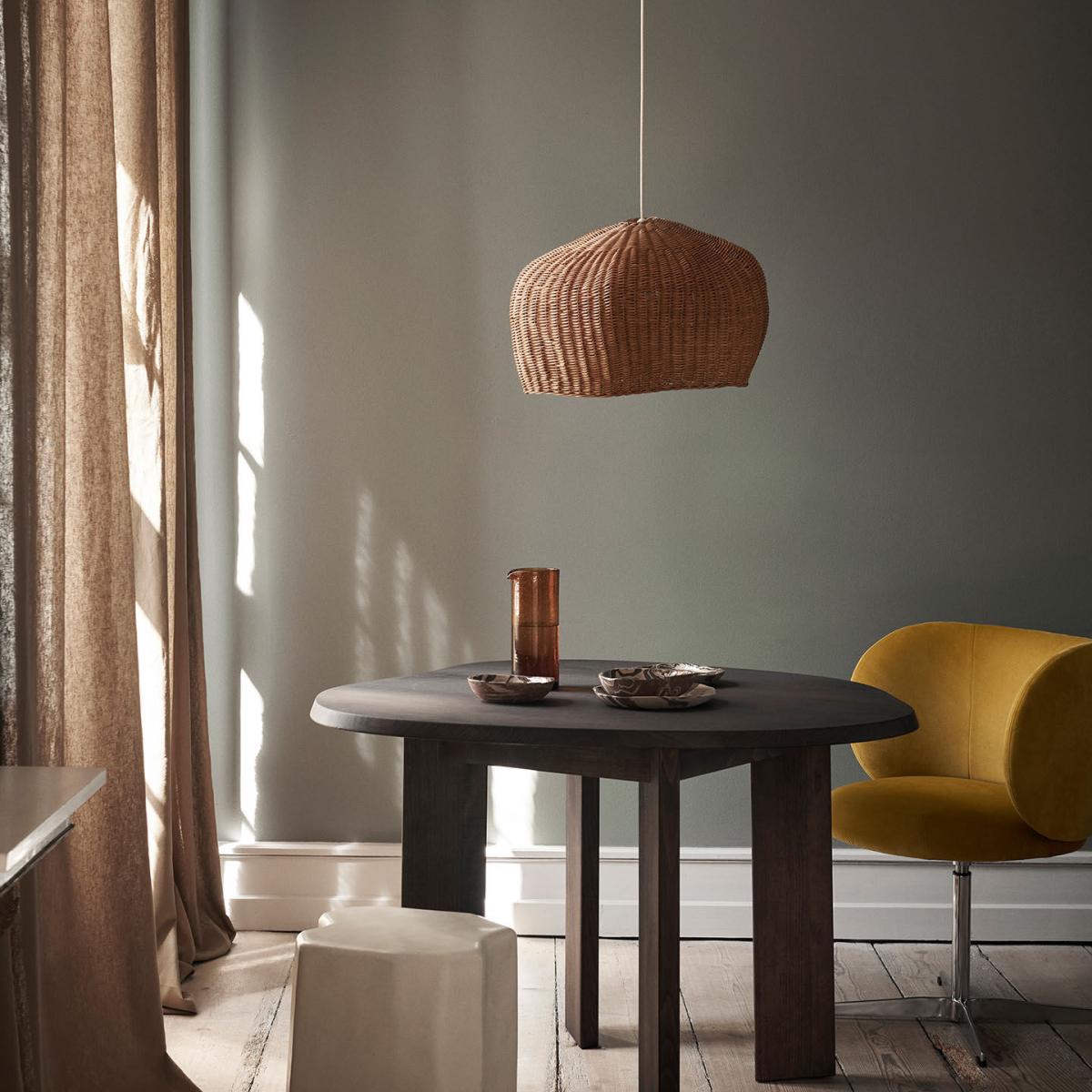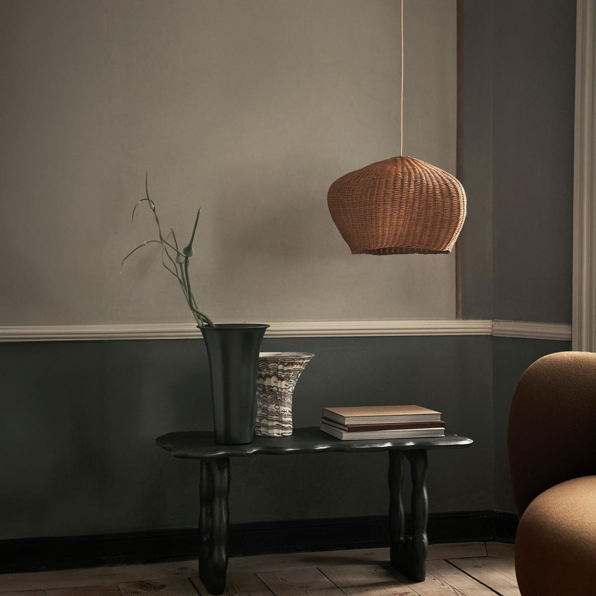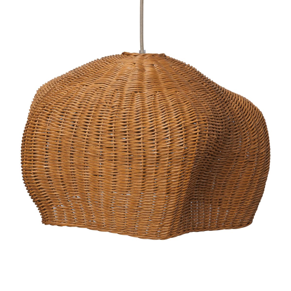 PLEASE NOTE: lampshade sold on its own (without electrical system). Adapted electrical system sold separately. A beautiful blend of exoticism and modernity, a warm minimalism for this superb hand-woven rattan lampshade. It has an organic, irregular shape. Its “distorted” lines are intriguing and fascinating. Use it as a centrepiece throughout your home. The light is soft and comfortable. Rattan plays with lightness, transparency, shadow and light as vegetation does in nature. The openwork structure filters the light like foliage on a tree. This is a hand-woven item, so small variations in colour and shape may occur.