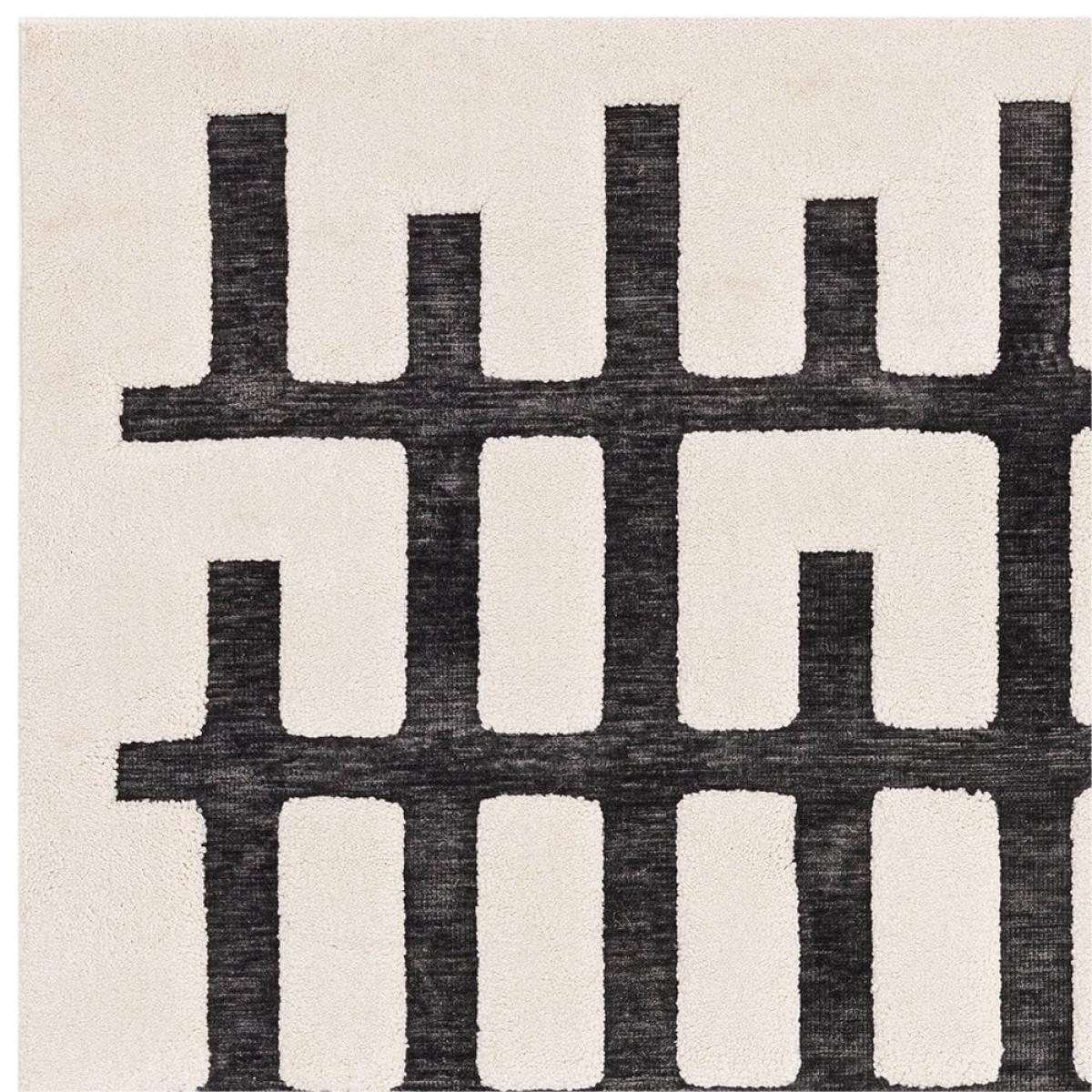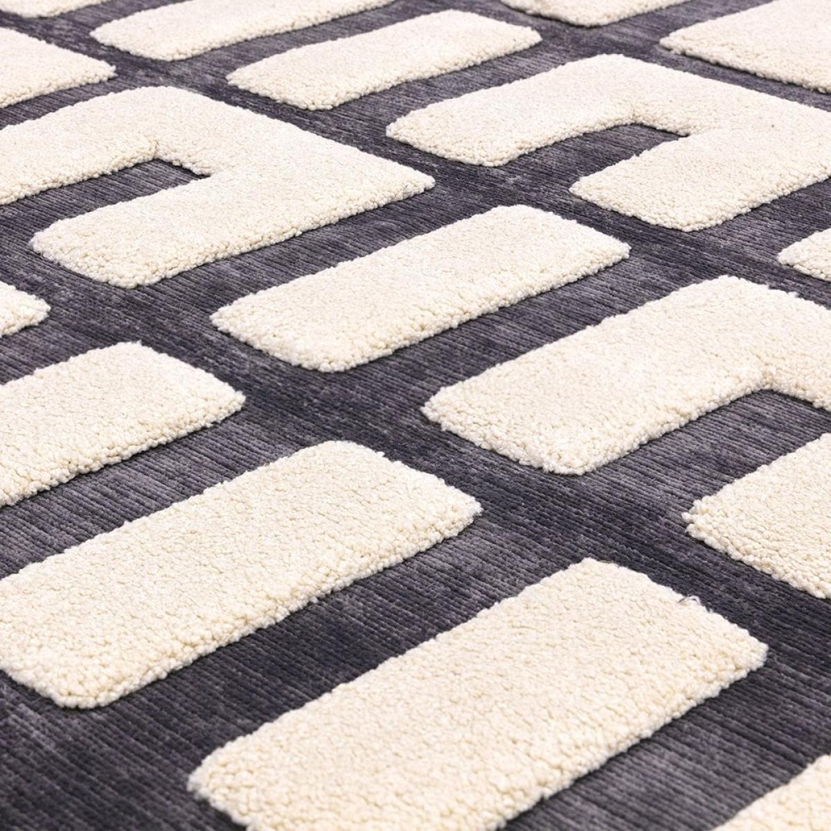 I love this rug because of its bold, modern design and the versatile colour palette of charcoal and ivory, making it a great statement piece for a contemporary interior. It works particularly well in minimalist or monochrome schemes, adding depth and texture without overwhelming the space. For styling tips, consider pairing it with sleek furniture and simple accessories to let the rug stand out, or mix it with colourful accents to create a lively, eclectic look. Its size is ideal for smaller living rooms, bedrooms, or as a focal point in a hallway, providing both visual interest and a cosy feel.