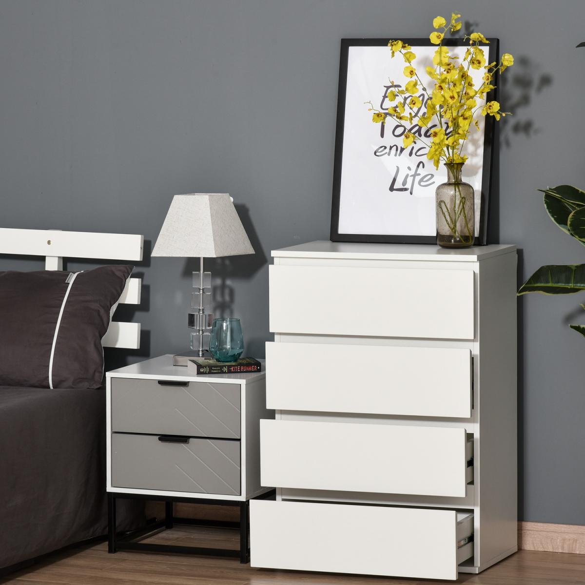Fresh, spacious and simple, this drawer cabinet is the perfect addition to every bedroom or living space. It comes with multiple drawers and a flat tabletop to give you plenty of storage room to keep your space tidy. The drawers, with metal rails for smooth operation, are fitted with a push-click latch to open and close easily. A forever-classic addition to your living space.