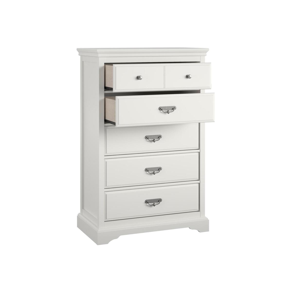 The classic painted finish on the MDF and particleboard offers a clean, updated look that wont break the budget. The 5 drawers will hold everything from jeans and sweaters, to undergarments and extra linens.