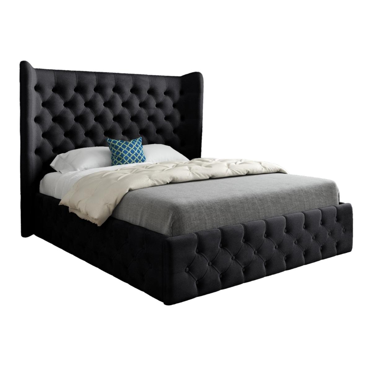 This Glorious Winged bed is the epitome of opulence. Classic Chesterfield design with Pleated headboard upholstery and pleated siderails with matching footboard. The delicate button detailing provides you with a sumptuous padded surface to help you relax whilst reading in bed. The bed comes with a solid slatted base for mattress longevity and supreme ventilation. Please Note- This item requires self-assembly with easy-to-follow instructions provided. The actual colour of the product may vary slightly as your screen display settings and lighting with your home environment may differ from our own.
