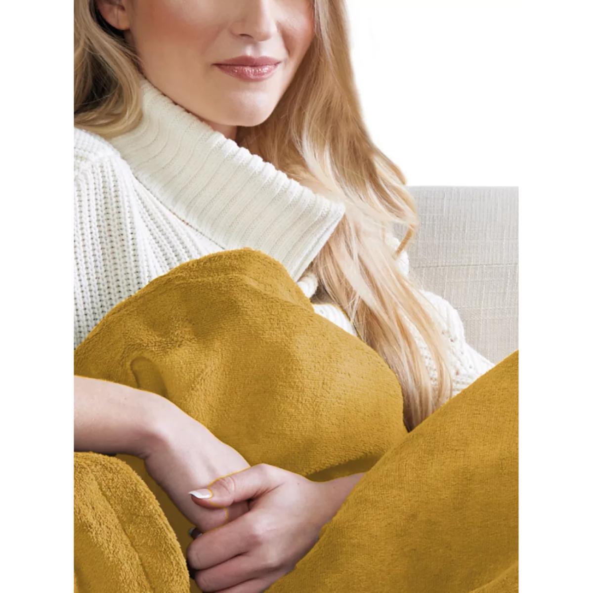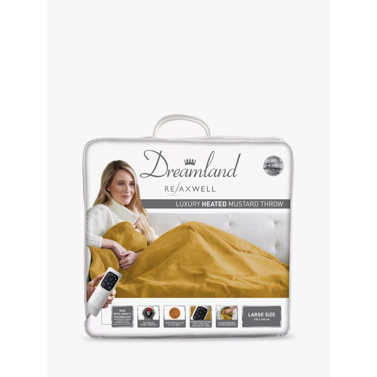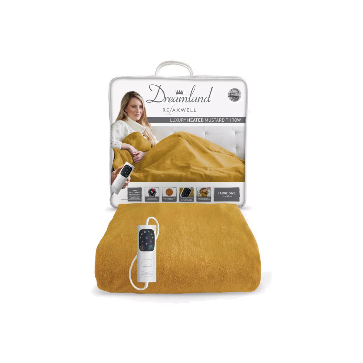 Dreamland's best-selling Mustard throw large size 160 x 120 cm offers the ultimate in luxury, perfect for relaxing on the sofa while being cocooned in warmth under the heated throw. Great to take the chill away, or when in need of a warm hug, if feeling under the weather, or hungover. Intelliheat+ Technology, cleverly responds to temperature changes while you sleep and relax. Fast 5 minute heat up and only costing from as little as 1p per night to run. So turn down your heating and turn on the blankie. Machine washable and tumble dryer safe, to keep it clean and fresh. Ideal as a gift or for student’s essential pack off to uni, great to snuggle under when studying, and relaxing.