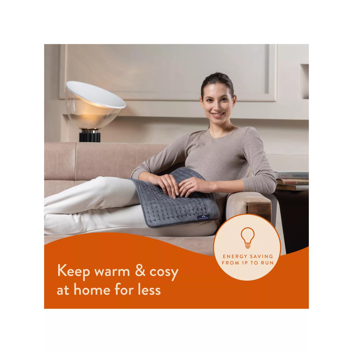 Relieve tension and take control of your wellbeing at the touch of a button. Designed from soft-touch velvety fabric that's kind to even sensitive skin, this multipurpose heat pad can be used all over the body for instant warmth and relaxation. Ideal for the back, shoulders, abdomen and legs. 5 minute fast heat up, 5 temperature settings and 3 hour auto shut off timer. It's machine washable and tumble dryer safe; simply detach the digital control.