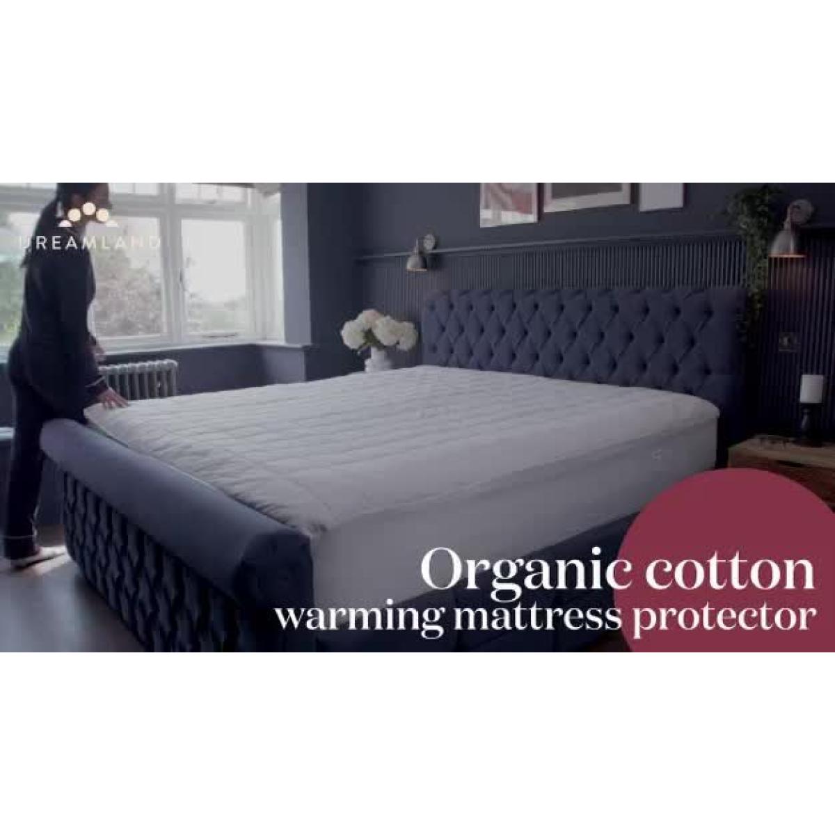 Crafted from 200 thread count sustainable, organic cotton, our premium warming mattress protectors have cloud-like softness so you can drift off cocooned in warmth. The natural fibres keep you toasty in the winter but cool in the summer. Superking size with 2 controls. Easy to fit with a deep 38cm elasticated skirt. 5 minute fast heat up, 6 temperature settings and auto shut off timer. Machine washable and tumble dryer safe; simply detach the digital control. Energy saving, costing from only 1p to run.