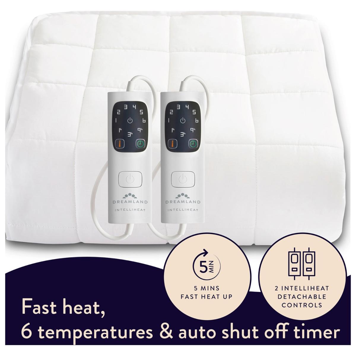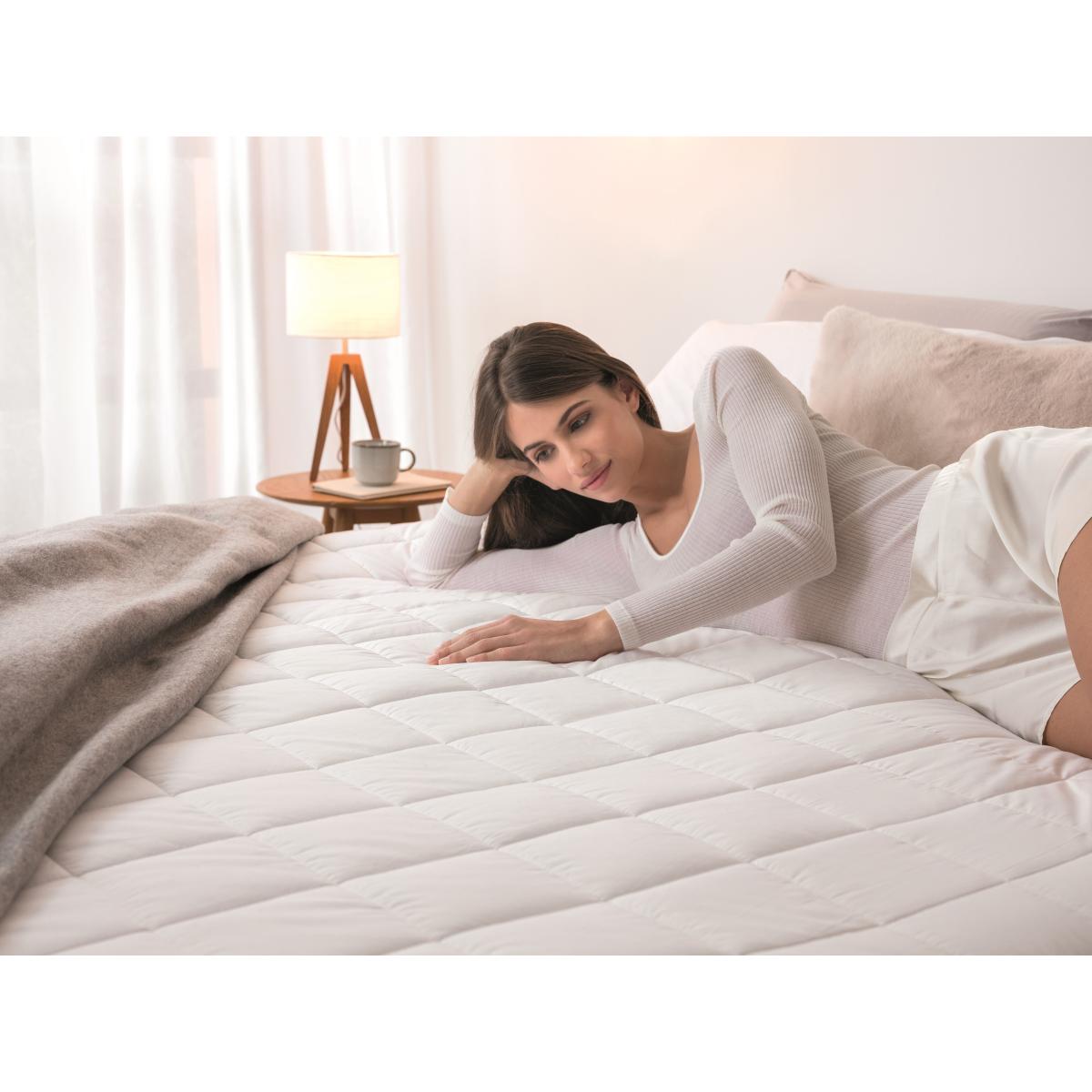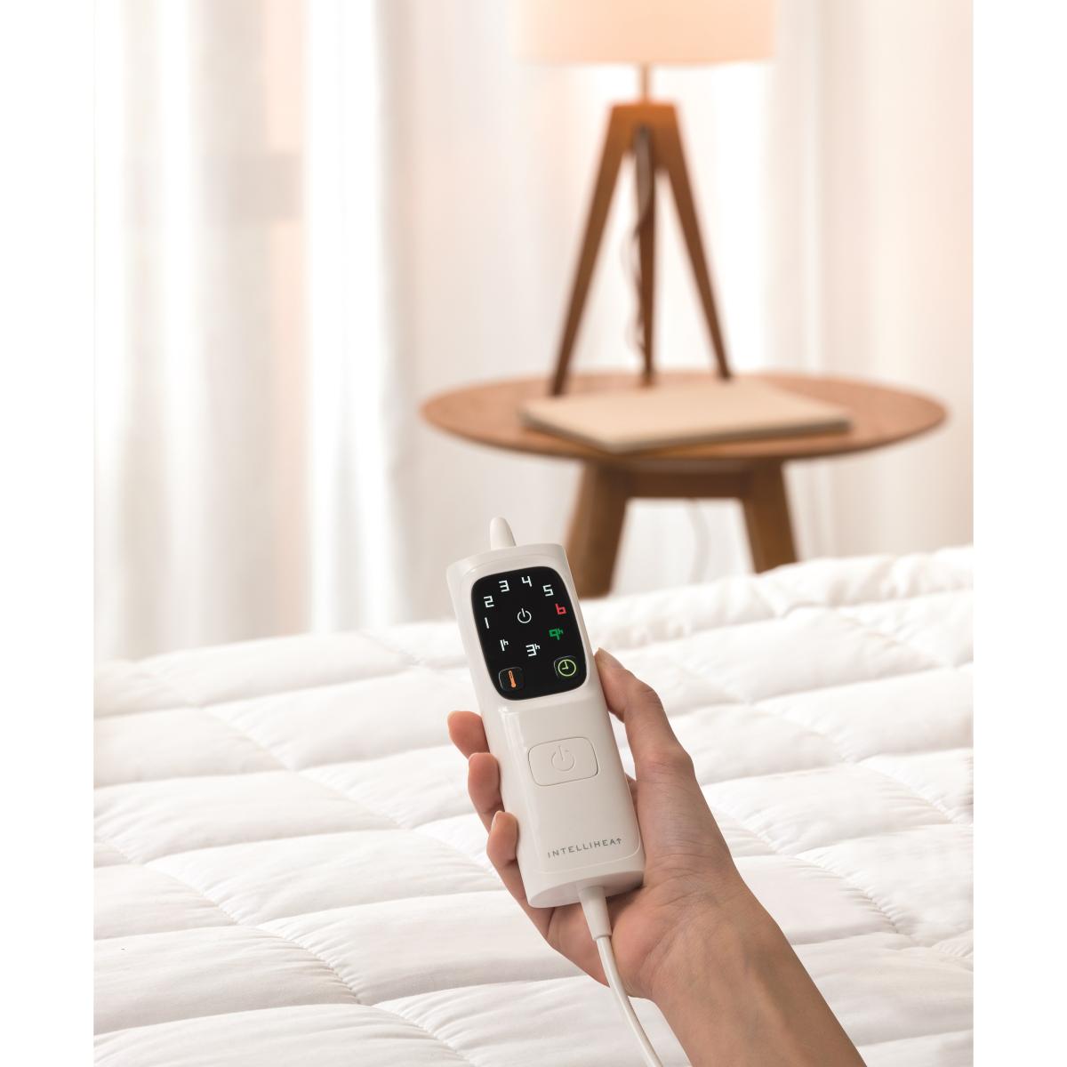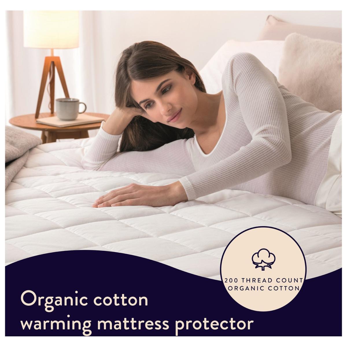 Crafted from 200 thread count sustainable, organic cotton, our premium warming mattress protectors have cloud-like softness so you can drift off cocooned in warmth. The natural fibres keep you toasty in the winter but cool in the summer. King size with 2 controls. Easy to fit with a deep 38cm elasticated skirt. 5 minute fast heat up, 6 temperature settings and auto shut off timer. Machine washable and tumble dryer safe; simply detach the digital control. Energy saving, costing from only 1p to run.