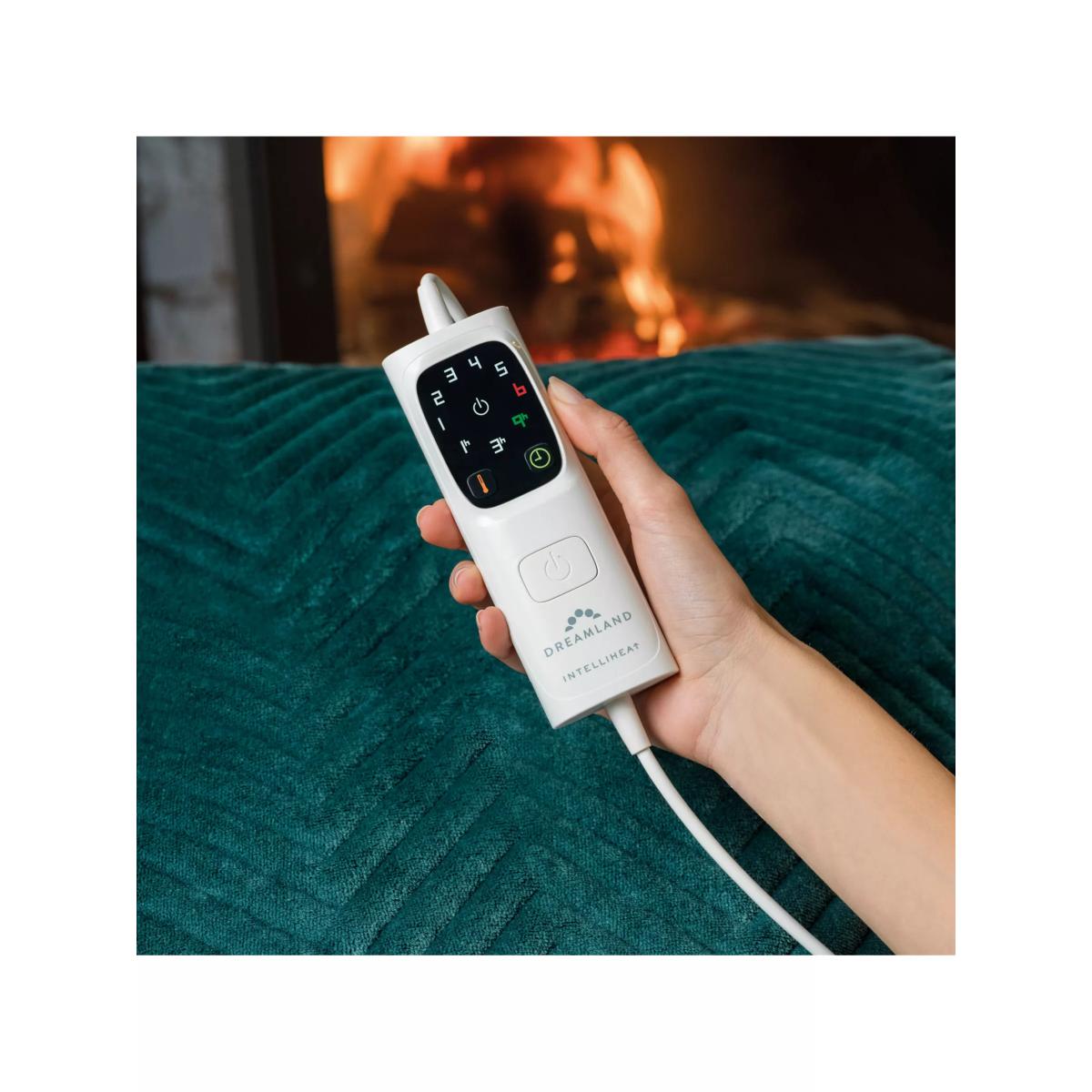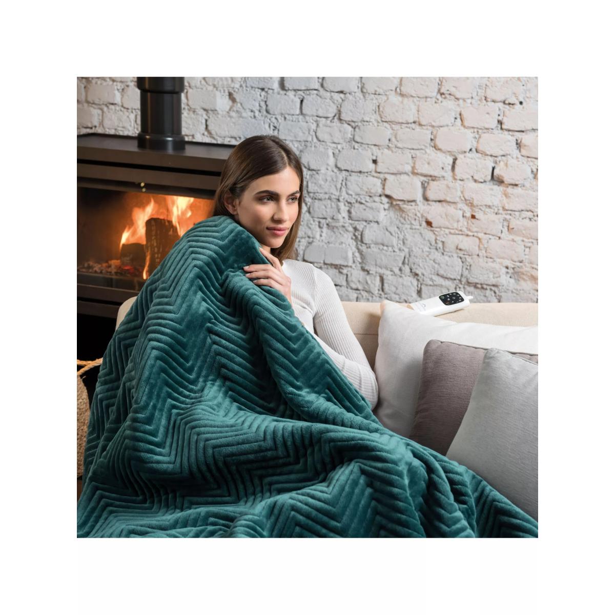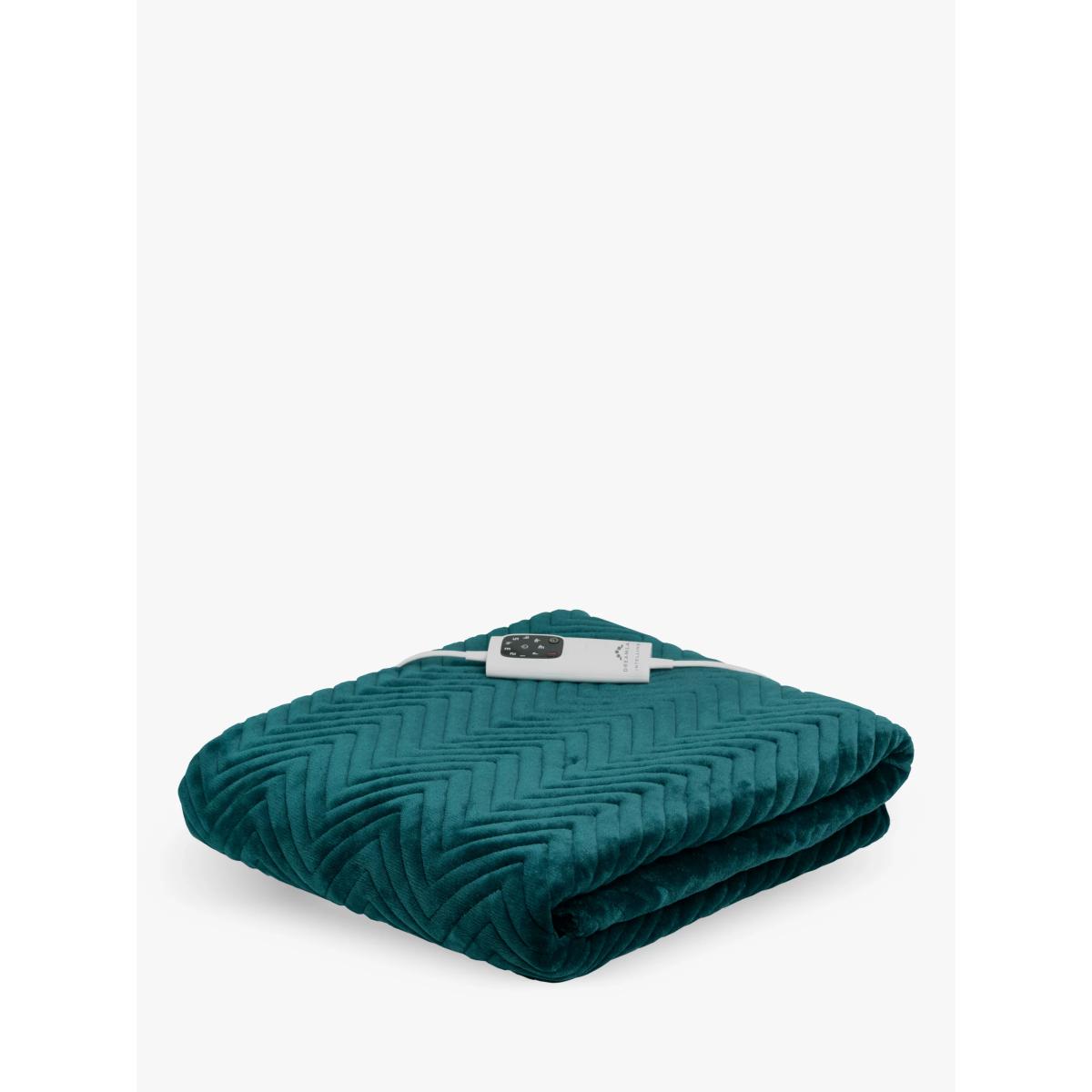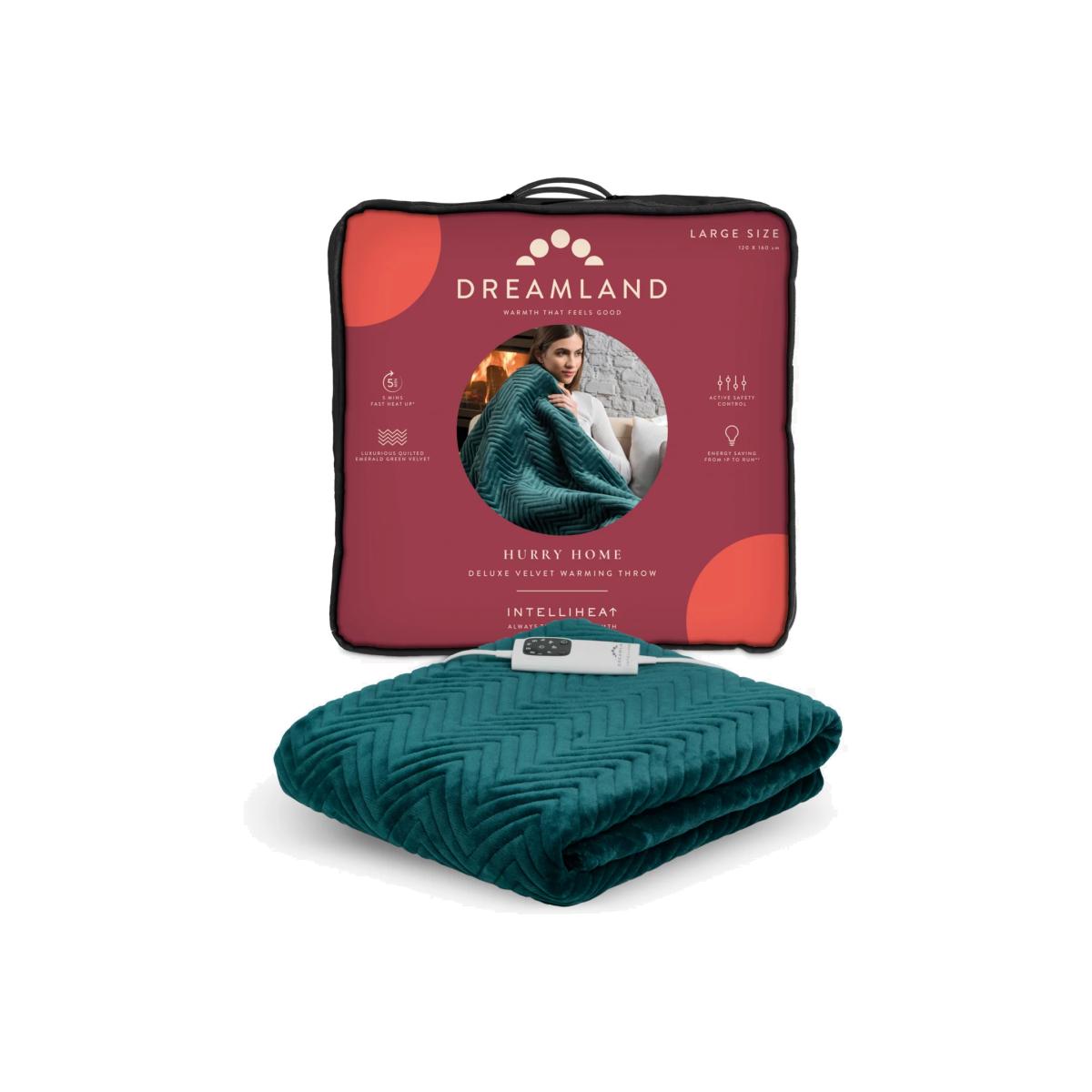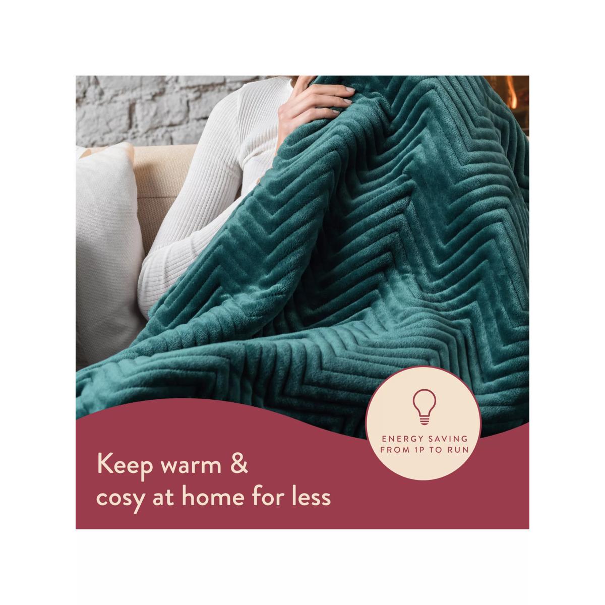 A luxurious quilted velvet warming throw in Emerald Green, featuring a contemporary herringbone pattern perfect for solo snuggling or shared cocooning. And when you’re not requiring the warmth and wellbeing benefits, it cleverly doubles up as a lavish living room accessory. 5 minute fast heat up, 6 temperature settings, auto shut off timer. It’s machine washable and tumble dryer safe; simply detach the digital control. Comes with a reusable storage bag.