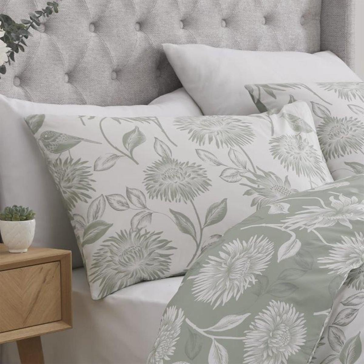 Sometimes the simplest of prints can be the most effective as is the case with gorgeous new floral design in a subtle green shade. The reverse of the bedding set features the same design in silhouetted colours to give you two great looks for the price of one. Dreams & Drapes is a trusted quality UK bedding brand, the design range presents beautiful printed heritage floral designs and traditionally-styled bedroom furnishings. Pillowcase size 76cm x 48cm Fabric: 52% polyester, 48% cotton Care: minimal ironing, Easy Care fabric. 40? wash, do not bleach, low heat tumble dry, do not dry clean All screens vary in colour reproduction and whilst every effort has been made to display the colour as accurately as possible it is for guidance only.