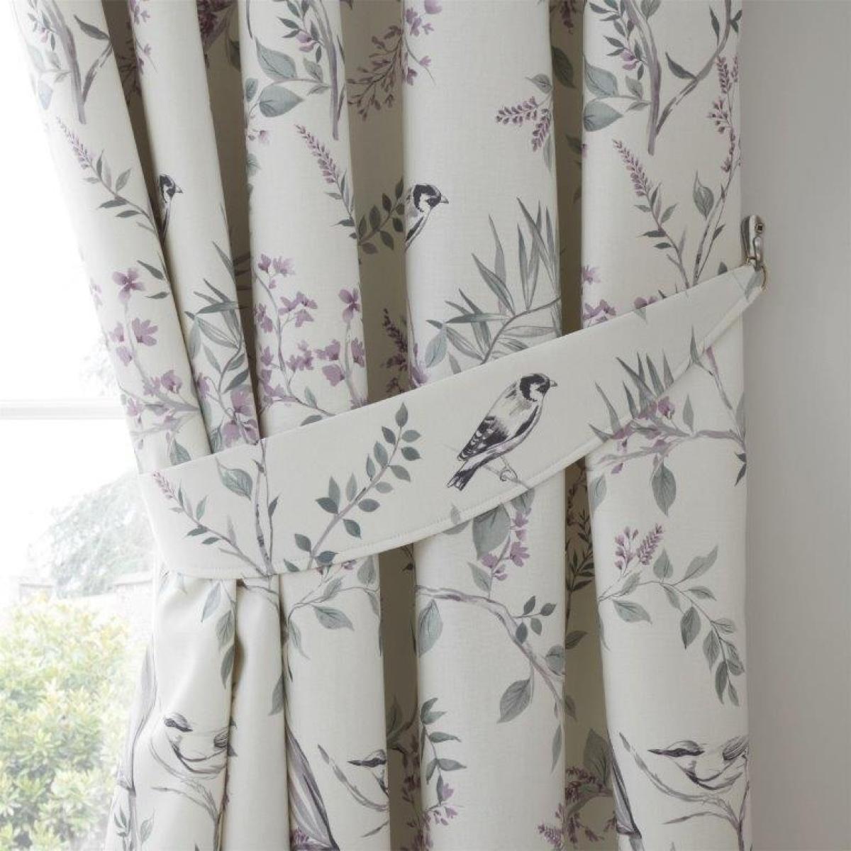 There's an irresistible spring-like feel to these exquisite 100% cotton pencil pleat curtains; a subtle symphony of flowers, leaves and songbirds. Supplied fully lined and with complementary tiebacks, they make a perfect statement in any traditionally-styled room. Dreams & Drapes is a trusted quality UK bedding brand, the Design range presents beautiful printed heritage floral designs and traditionally-styled bedroom furnishings. Pencil pleat curtains can be fitted onto either a curtain pole or curtain track (2 panels per pack). Fabric: 100% Cotton - Lining: 100% Cotton (Light Filtering)  Care: Dry Clean Only. All screens vary in colour reproduction and whilst every effort has been made to display the colour as accurately as possible it is for guidance only.