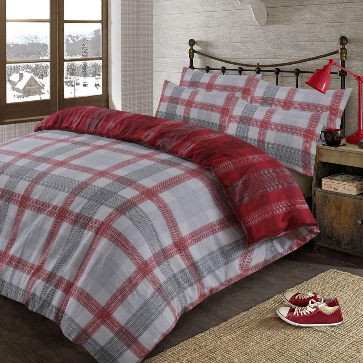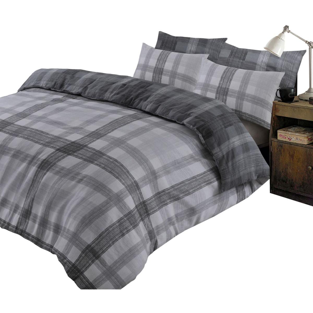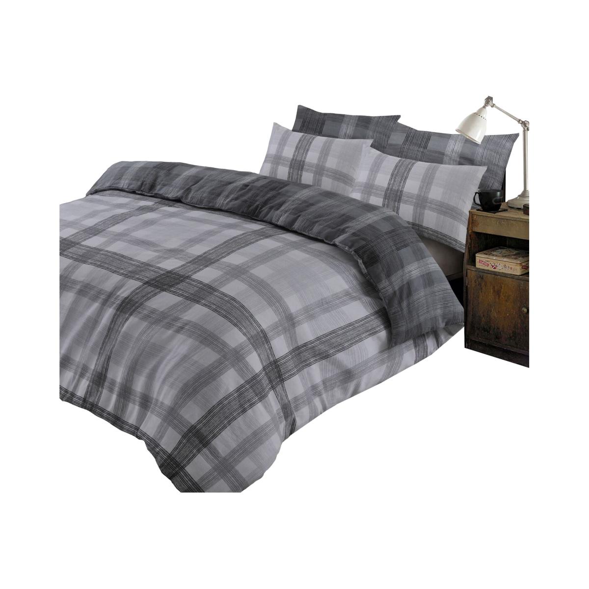 Dreamscene Boston Brushed Cotton Duvet Cover Bedding Set - Grey / Single