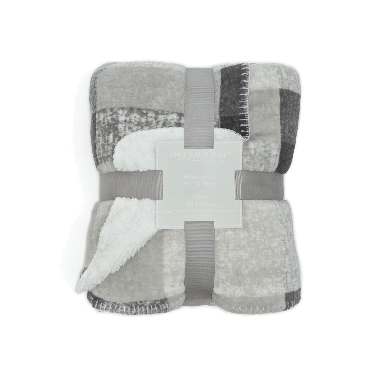 Dreamscene Check Sherpa Flannel Fleece Throw Blanket - Grey