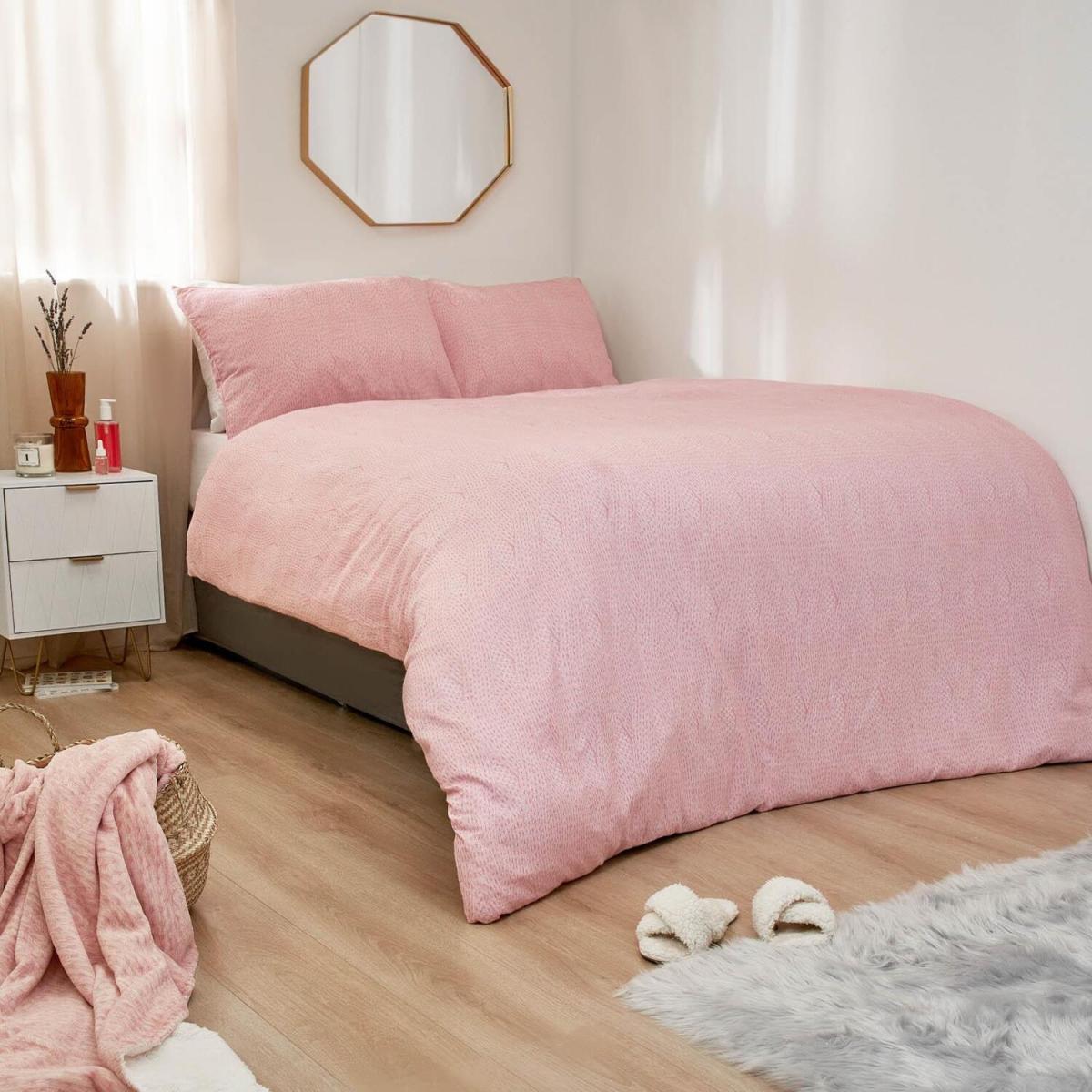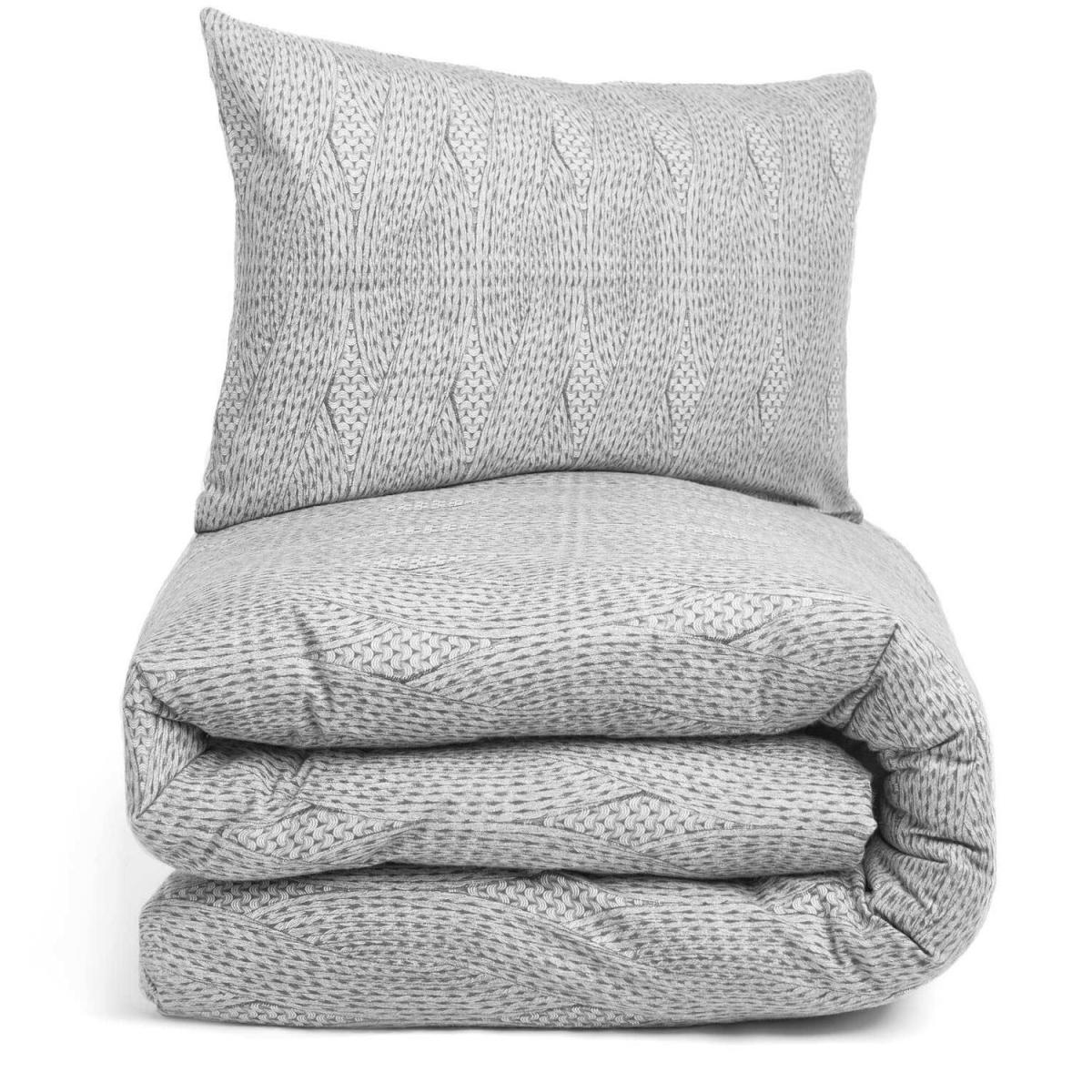 This 2-in-1 reversible duvet cover set from the Dreamscene range will be sure to modernise your room. The face shows a large chunky knit print and the reverse side features a smaller knit pattern, the set comes with matching pillow case(s) to complete the look. This modern duvet cover is made from 100 soft warm brushed cotton. The bedding set is soft, comfortable and durable, allowing for a relaxing nights sleep. Provides extra warmth on cooler nights, with a super soft touch to the skin.