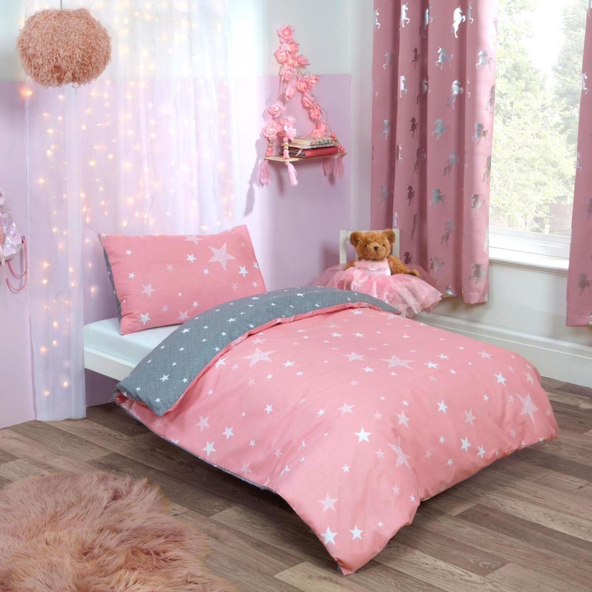 Dreamscene Galaxy Texture Stars Kids Duvet Cover Bedding Set - Blush / Single