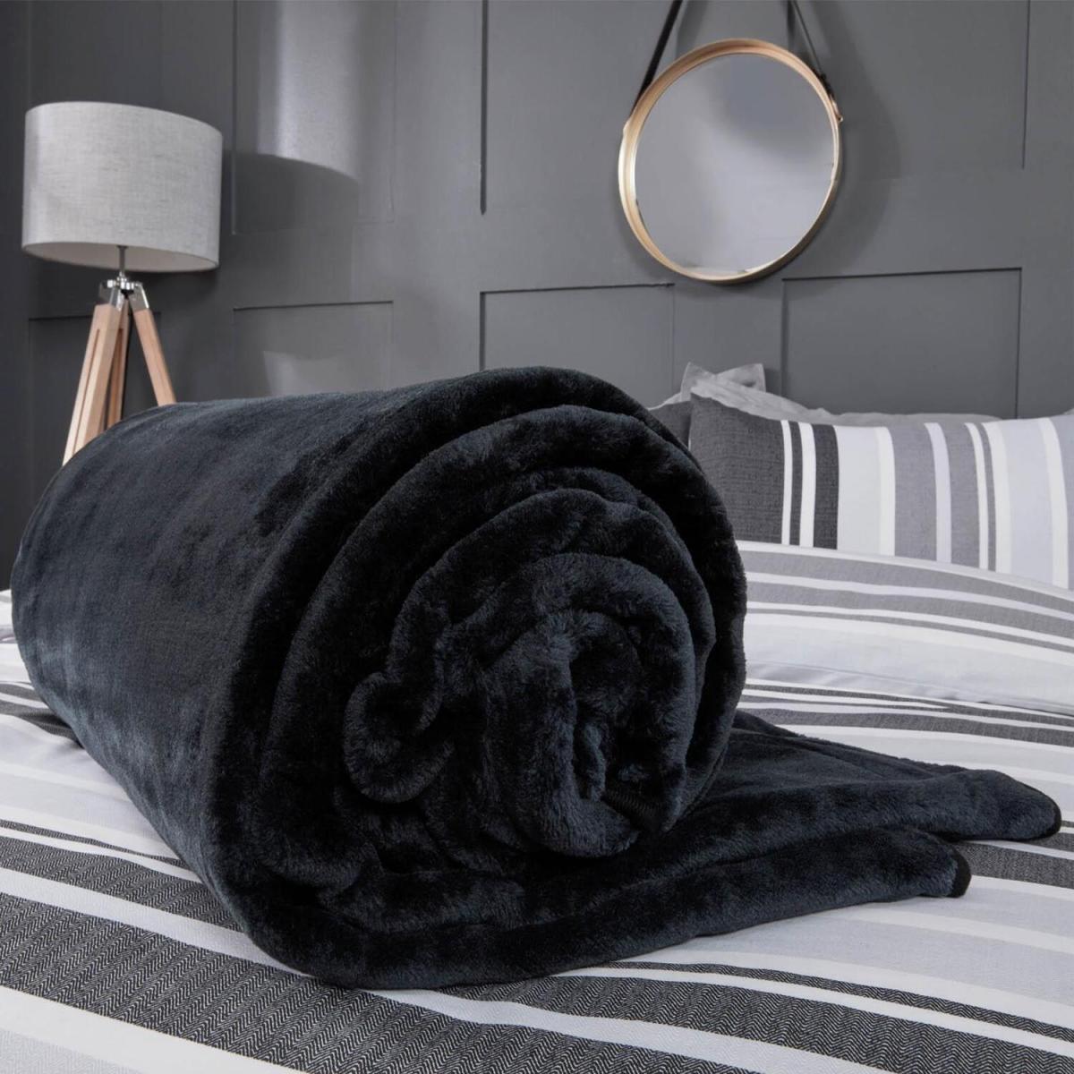 Dreamscene Mink Soft Faux Fur Throw Fleece Blanket - Black / 200cm